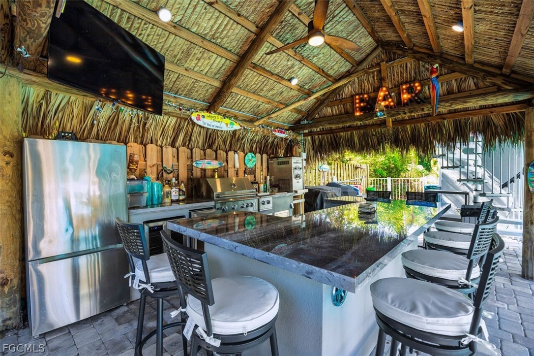 Step outside to your private resort-style oasis featuring a spectacular outdoor kitchen, tiki hut, and Olympic-size pool. Within the last year, the pool has been fully refinished and upgraded with brand-new wireless pool equipment for modern efficiency and remote control capability.