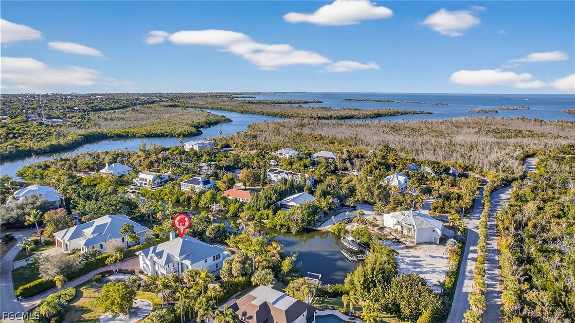 On the tranquil western end of Sanibel, this waterfront retreat offers direct access to the Gulf and a life shaped by sun and sea. Soaring 14' ceilings and a wide-open living space create an atmosphere of effortless elegance, while a wall of pocketing glass doors dissolves the boundary between indoors and out. Step onto the expansive deck, where a spa invites calm reflection, the staircase leading to a shimmering pool and generous patio, and beyond, to a private 15-foot canal side dock. From here, drift past serene tidal bays and protected lands through Blind Pass to the Gulf and Pine Island Sound. The primary suite is a sanctuary of light and space, wrapped in floor-to-ceiling glass with tranquil views of the canal and deck. Its spa-like bathroom—complete with dual vanities, a walk-in closet, soaking tub, and separate shower—offers indulgent comfort. A private guest suite with ensuite bath ensures a warm welcome for family and friends. On the eastern side of the property rests a rare and storied treasure: a historic Calusa Indian mound, honoring the legacy of the ancient mariners who once sought these elevated shores close to rich coastal estuaries.