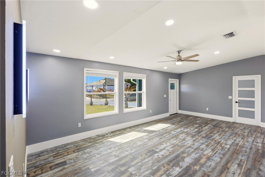 This home has been upgraded throughout with modern touches, including new LED lighting fixtures, updated plumbing, a new HVAC system, all-new impact windows and doors for efficent electric bills and completely renovated bathrooms with tiled showers, rainfall showerheads, new vanities, and fresh new flooring.