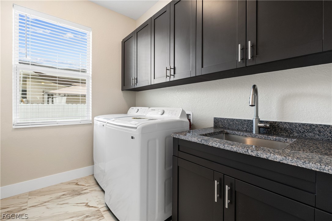 The home also includes a large laundry room equipped with a washer, dryer, and utility sink for added convenience. A two car garage with remote access allows for safe and easy entry into the home. The home is designed with family in mind.