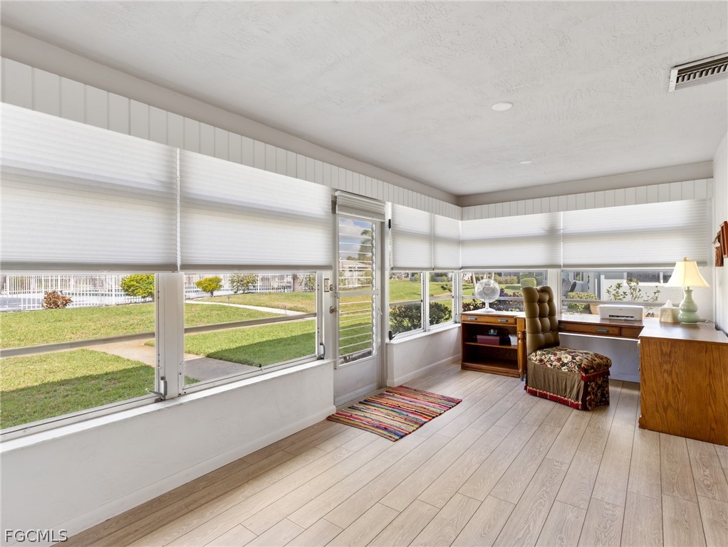 Welcome to Whiskey Creek! This beautifully maintained attached villa in the desirable 55+ community of Whiskey Creek Village Green offers a relaxed, low-maintenance lifestyle in one of Southwest Florida’s most charming neighborhoods. Presented in pristine condition and offered turnkey furnished, this 2 bedroom, 2 bath home is truly move-in ready—simply bring your suitcase and start enjoying paradise. Recent updates provide peace of mind, including a new hurricane-rated garage door, recently updated roof (within past 2 years), impact windows (excluding jalousie on porch) and front door and a 2020 air conditioning system to keep you cool year-round. In addition, the exterior was recently painted and the appliances are new within the past 4 years. The spacious kitchen offers plenty of room for both a breakfast table and a full dining area, making it perfect for everyday living or entertaining friends and family. The bright living room flows into an adjoining Florida Room/den or flexible bonus space, ideal for a home office, craft room, exercise area, or cozy reading retreat. Just steps from your back door, enjoy easy access to the heated community pool—perfect for relaxing swims and soaking up the Florida sunshine. Whiskey Creek also has an 18 hole golf course -membership optional and open to the public - and a clubhouse with restaurant (social membership available) great for meeting new friends! With its excellent condition, thoughtful updates, and turnkey furnishings, this villa makes it effortless to start living the Florida lifestyle you’ve been dreaming of. Don’t miss this opportunity—homes like this in Whiskey Creek don’t stay available for long!