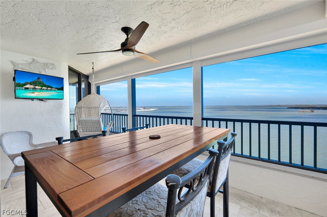 Discover one of the finest opportunities available at Punta Rassa in the highly sought-after center Bayfront Building. Perched on the 9th-floor penthouse level, this exceptional residence offers a private oasis above the bay with breathtaking panoramic island and sunset views from the screened balcony.