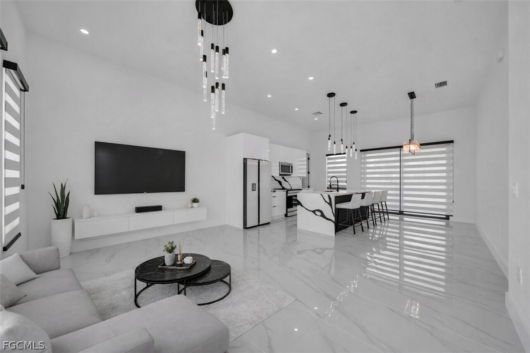 Welcome to your future home, where modern elegance meets thoughtful design in this newly constructed residence. Nestled in a prime Lehigh Acres location, this pristine property presents an exceptional opportunity for those seeking contemporary living with refined details. Step into a harmonious layout featuring three generously proportioned bedrooms complemented by three well-appointed bathrooms, offering the perfect balance of privacy and comfort. The heart of this home showcases a sophisticated open-concept kitchen that seamlessly blends functionality with style. Culinary enthusiasts will appreciate the designer touches, including premium quartz countertops, a spacious island perfect for casual dining and entertaining, and a complete suite of new stainless steel appliances. The carefully curated appliance package includes a refrigerator, dishwasher, built-in microwave, and range, all selected to enhance your cooking experience. Thoughtful attention to detail is evident throughout, from the sleek porcelain tile flooring that flows seamlessly through each room to the impact-resistant windows and doors that provide both security and peace of mind. The property's strategic location outside of flood zones offers additional reassurance for homeowners. The residence's exceptional location places you moments away from essential amenities, including educational institutions spanning elementary through high school levels, and a public library. For those requiring convenient access to Fort Myers, the property's position provides effortless connectivity to urban conveniences while maintaining a serene residential atmosphere. Every element of this home has been carefully considered to create an environment where luxury meets practicality. The clean lines, modern fixtures, and superior craftsmanship combine to deliver a living space that exceeds expectations. With completion mere weeks away, this property presents a rare opportunity to be the first to call this exceptional residence home. Experience the perfect blend of sophisticated design and practical living in this newly constructed haven. Don't let this opportunity to own a piece of modern luxury slip away – schedule your private viewing today and step into your future home.