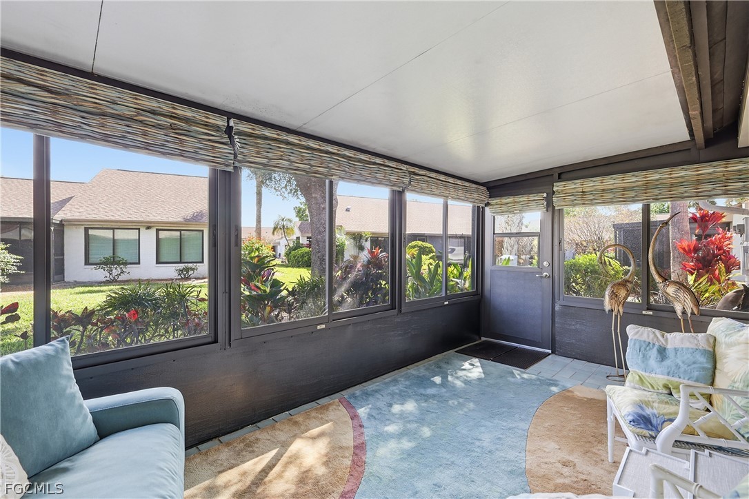 Looking for a move-in ready condo in a 55+ golf community in Fort Myers? This 2 bedroom + den, 2 bath condo in Seven Lakes Golf & Tennis Community offers bundled golf, updated systems, and an active lifestyle in one of the most desirable golf communities in Southwest Florida. Major upgrades already completed: new roof (2023), new A/C (2023), impact windows and doors, and hurricane shutters — providing peace of mind and lower long-term maintenance. The updated kitchen features quartz countertops, stainless steel appliances, and a multifunction convection/microwave oven combo that allows you to bake, roast, broil, air-fry, and microwave in one space-saving unit. The flexible 2-bedroom + den layout offers space for guests, a home office, or hobby room. An enclosed lanai with mini-split A/C creates additional year-round living space perfect for relaxing after a round of golf. Golf cart included, plus deeded golf cart parking space, making it easy to enjoy the full Seven Lakes golf lifestyle.