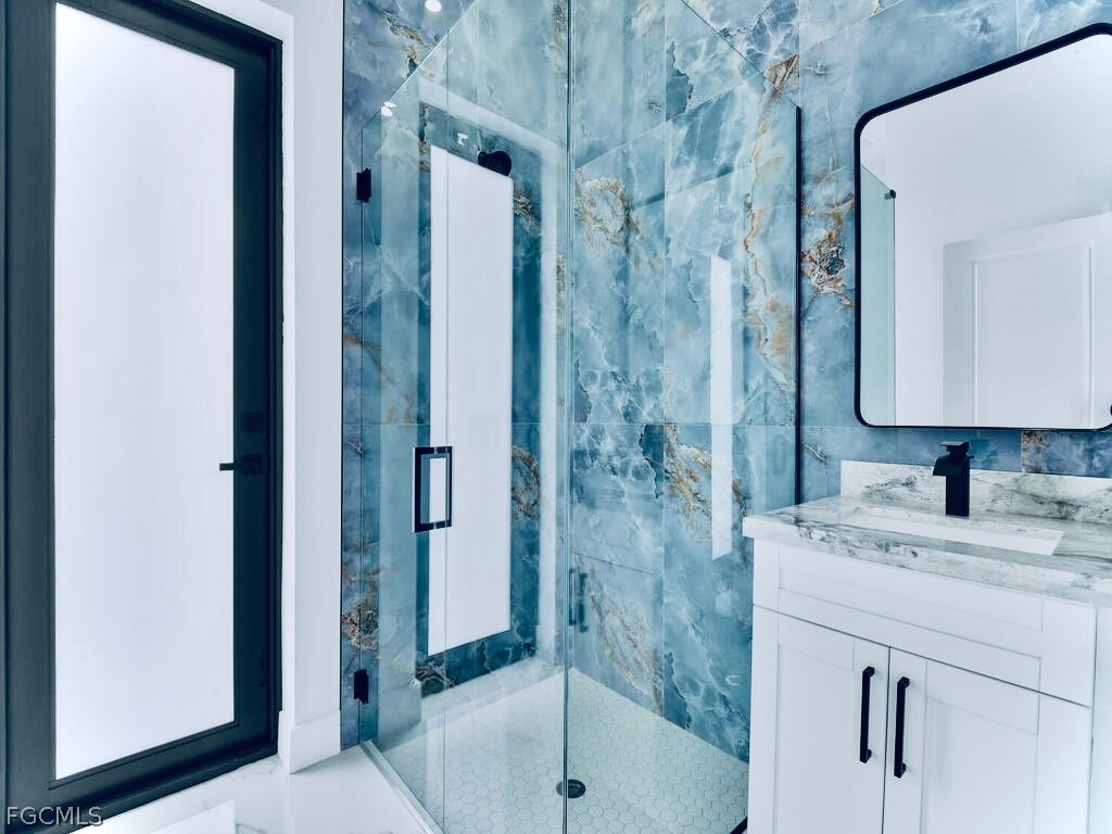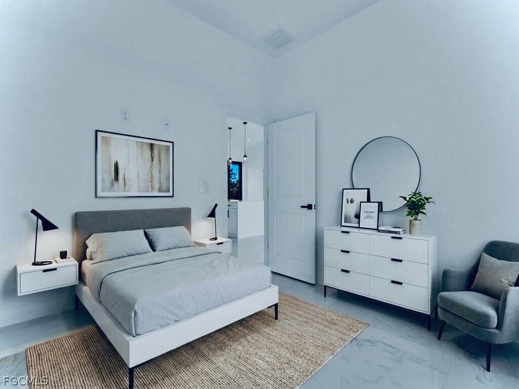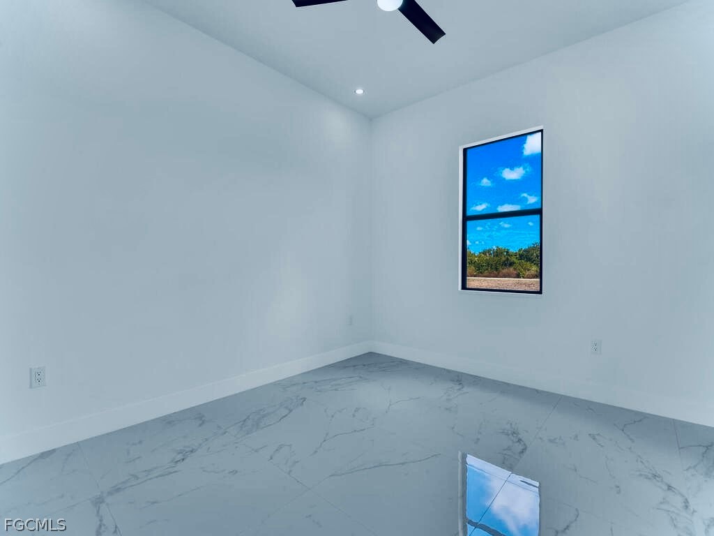 Welcome to this MAGNIFICENT MODERN 3/3 Nestled away on a quiet DEAD END cul-de-sac just minutes to all major amenities & a quick commute to Fort Myers. These GRAND elevations with high Volume ceilings & 8FT IMPACT windows & doors spotlights attractive OVERSIZED porcelain tile throughout, a welcoming breakfast bar with rainfall QUARTZ countertops, soft-close shaker cabinets, high end LG STAINLESS STEEL appliances, and IMPRESSIVE frame-less glass TILED showers. This open floor plan with GREAT room highlights Premium fixtures with remotes, Pendant & recessed lighting, walk-in closet & Desirable closet organizers, enticing QUARTZ countertops in baths, and an open back patio with Potential Pool bath or efficiency access. It also features a HIGH EFFICIENCY washer & dryer under air, epoxy flooring in garage, custom mirrors, entertainment pre-wired, nicely tiled front entrance and a walkway around to garage. Schedule your private showing today!