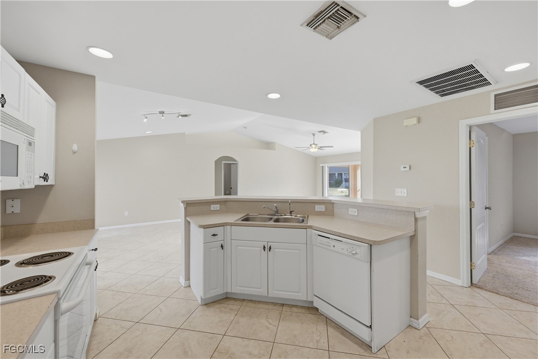 Inside, you’ll find a blend of tile flooring in main living spaces and NEW carpet in the bedrooms, making this a low-maintenance, comfortable home. The vaulted ceilings help create a light, open feeling throughout the living space.