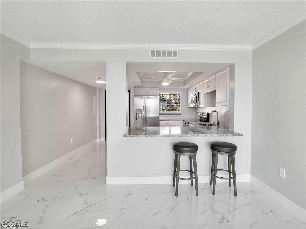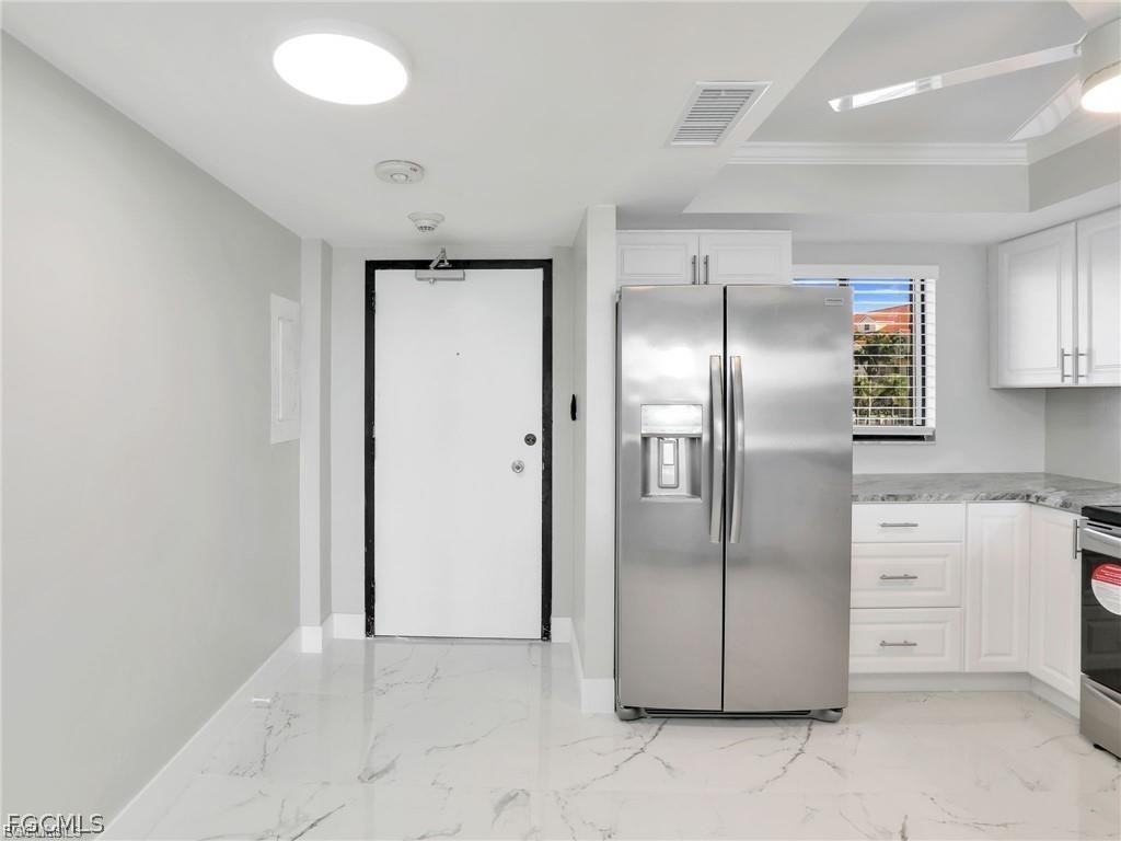Beautifully Updated Riverfront Condo for Lease – Must-See Views! Enjoy stunning river views from this fully updated, move-in-ready condo, available now for long-term lease. This bright and welcoming home features a modern kitchen filled with natural light, complete with white cabinetry, granite countertops, brand-new stainless steel appliances, and a tray ceiling with fan. The kitchen opens to a spacious great room, perfect for relaxing or entertaining, and includes a breakfast bar and space for a dining table. Step onto the screened lanai to take in peaceful views of the river—an ideal spot for morning coffee or evening wind-downs. The primary bedroom offers lanai access, a ceiling fan, and an en-suite bathroom featuring a walk-in shower, updated vanity, and backlit mirror. A second bedroom and full guest bath provide comfort and privacy for visitors. Additional features include: Tile flooring throughout Crown molding, updated lighting, and modern paneled doors Sliding closet doors for a clean, contemporary look Brand-new A/C unit installed in 2025 This riverfront community also offers great outdoor amenities, including a sparkling pool, shuffleboard court, and plenty of green space to enjoy. A city riverfront park is just down the street, and you’ll be minutes from downtown Cape Coral, with easy access to shopping, dining, and the bridge to Fort Myers. If you're looking for a beautifully upgraded, low-maintenance rental with a prime waterfront location, this condo is a must-see. Rent includes water, sewer, trash removal and basic cable. Boat dock rental available. No Pets. No Smoking. At least one tenant must be 55 years old. Schedule your private tour today!
