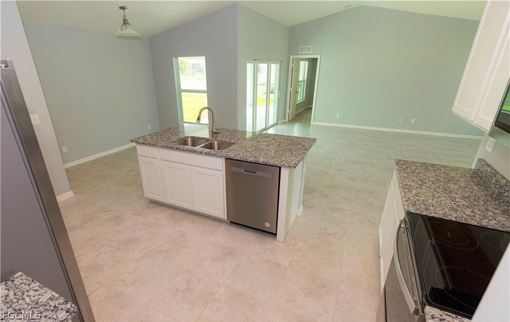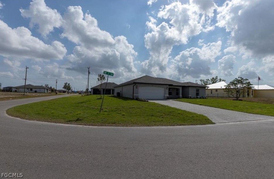 Almost-new 3-bedroom, 2-bathroom home - CITY WATER AND SEWER - located on a desirable corner lot in Southwest Cape Coral. This modern residence features an open floor plan with bright living and dining areas, tiled floors in the common areas, and carpeted bedrooms. Island Kitchen, granite countertops, and stainless steel appliances. The master suite includes a walk-in closet and double sinks. Covered lanai provides additional outdoor living space. The driveway is finished with pavers. Laundry area is conveniently located inside the home. City water and sewer. Excellent location near Chiquita Boulevard and Pine Island Road, close to shopping centers, schools, and convenience stores. Rent this home as soon as possible—it won’t last long on the market!