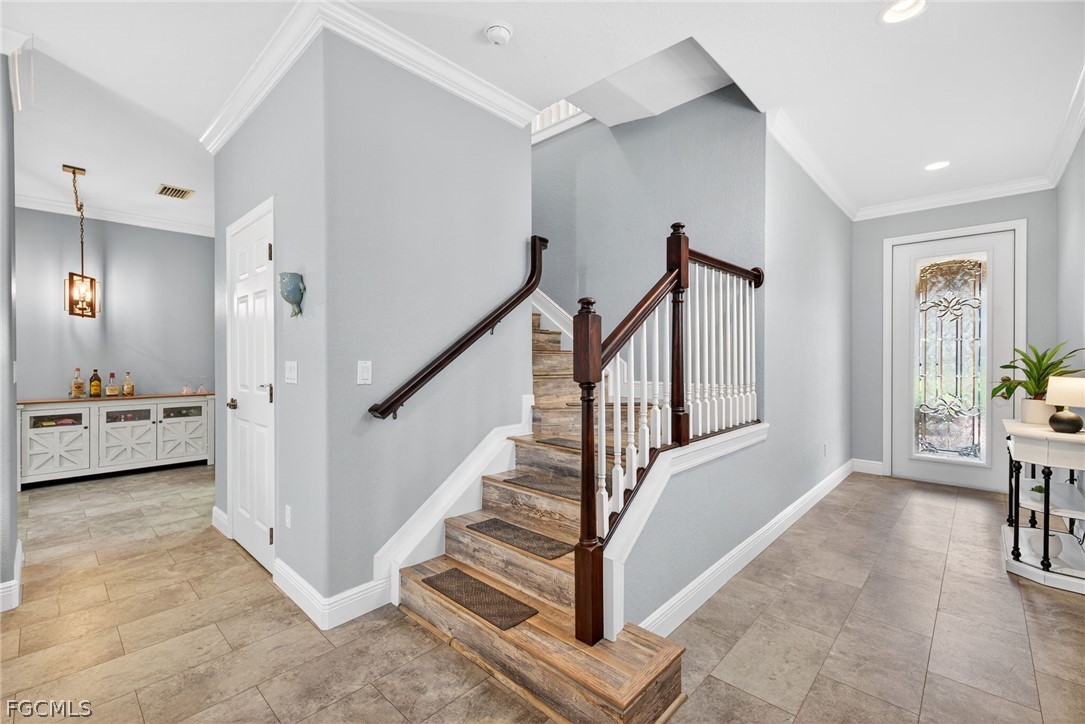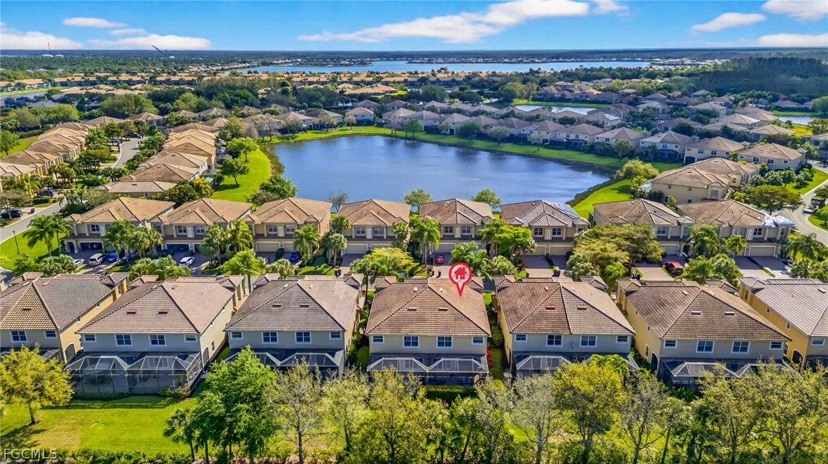 Located in the vibrant Bella Terra community, this spacious 3-bedroom, 2.5-bathroom townhome spans nearly 2,300 square feet and offers the perfect blend of modern comfort and Florida living. Step through the front door of 20468 Larino Loop and immediately experience the bright, airy volume of this expansive townhome. As you move through the foyer, the home opens into an open-concept main level where the living and dining areas flow effortlessly together with tile flooring and crown molding throughout. The well appointed kitchen features a breakfast bar, updated countertops, a custom backsplash, white cabinets and stainless steel appliances. The space also connects with large sliders that lead you out to a screened-in and tiled lanai—the ideal spot to sit back and enjoy the peaceful Estero landscape. As you head upstairs (which has wood flooring from the stairs up), the home continues into a massive, versatile loft area. This space acts as a second heart of the home, offering endless possibilities as a high-end media room, a quiet home office, or a vibrant play zone. Just off the loft, you’ll discover the primary suite— featuring tray ceilings and an oversized walk-in closet. Your primary bathroom features dual sinks with a separate tub and shower. Two additional guest bedrooms and a full bath are positioned to provide maximum privacy for family or visitors. The home comes with manual shutters and also has plantation shutters added throughout. PLUS! Being sold TURNKEY and ready for you to move in! Outside of your homes and inside of the gates of Bella Terra, you have many resort-style amenities to enjoy endlessly. At the center of it all is the 7,000-square-foot clubhouse and a massive lagoon-style pool with a rock waterfall and spa. In addition, there's the state-of-the-art fitness center, tennis and pickleball courts, beach volleyball, basketball, bocce, a rare in-line skating rink and peaceful walking trails. This community offers a vibrant, all-inclusive environment that perfectly complements the modern comfort of the home.