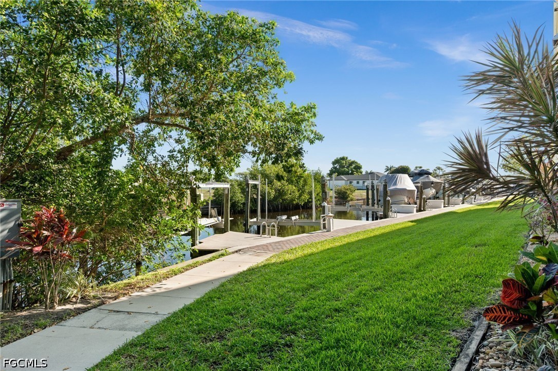 Experience the best of waterfront living in Island Cove, one of Cape Coral’s most desirable gated communities. This spacious ground-floor end unit features 3 bedrooms, 2 baths and boasts the largest, brightest layout available—offering added privacy and an abundance of natural light throughout. Enjoy peaceful views of the mangroves and canal from your home, or step outside to your private patio with direct access to the water and nearby boat docks. Boaters will love the direct Gulf access with no bridges, making every outing effortless. Inside, the open-concept design creates an inviting space ideal for entertaining, complemented by a whole-home water filtration, upgraded soundproofing, and the ease of single-level living with no stairs. The unit remained high and dry with no flooding. The boat dock with a 10,000 lb lift is available for purchase separately. Residents of Island Cove enjoy access to community amenities including a BBQ area, clubhouse, community pool, and tennis courts. Perfectly situated just minutes from local dining, shopping, parks, boat ramps, beaches, and top fishing spots, this home offers a relaxed, low-maintenance coastal lifestyle in a prime location.