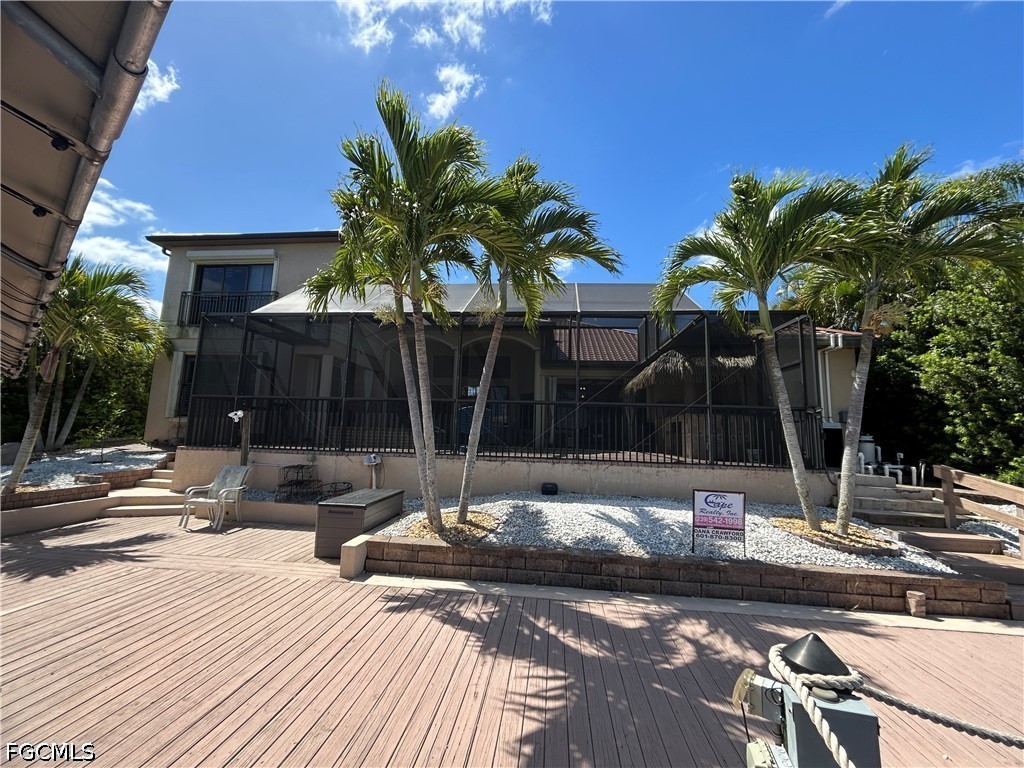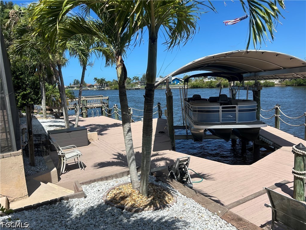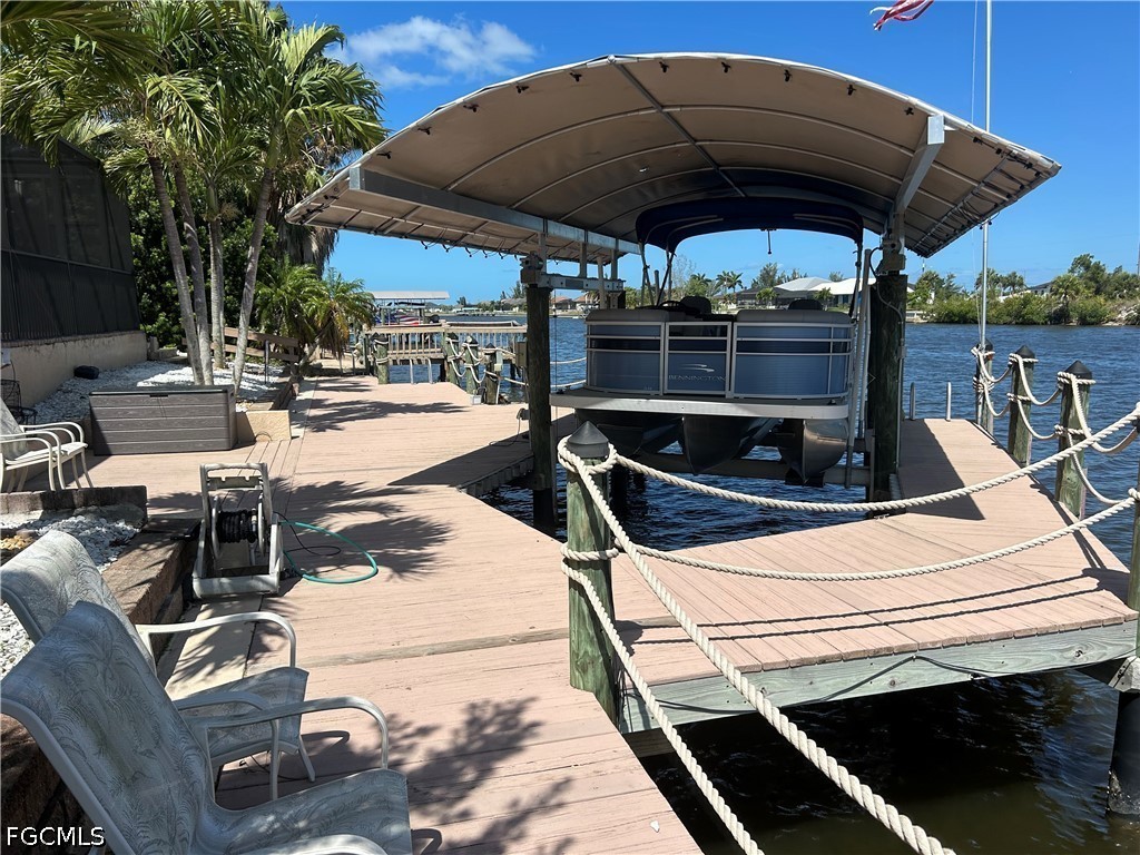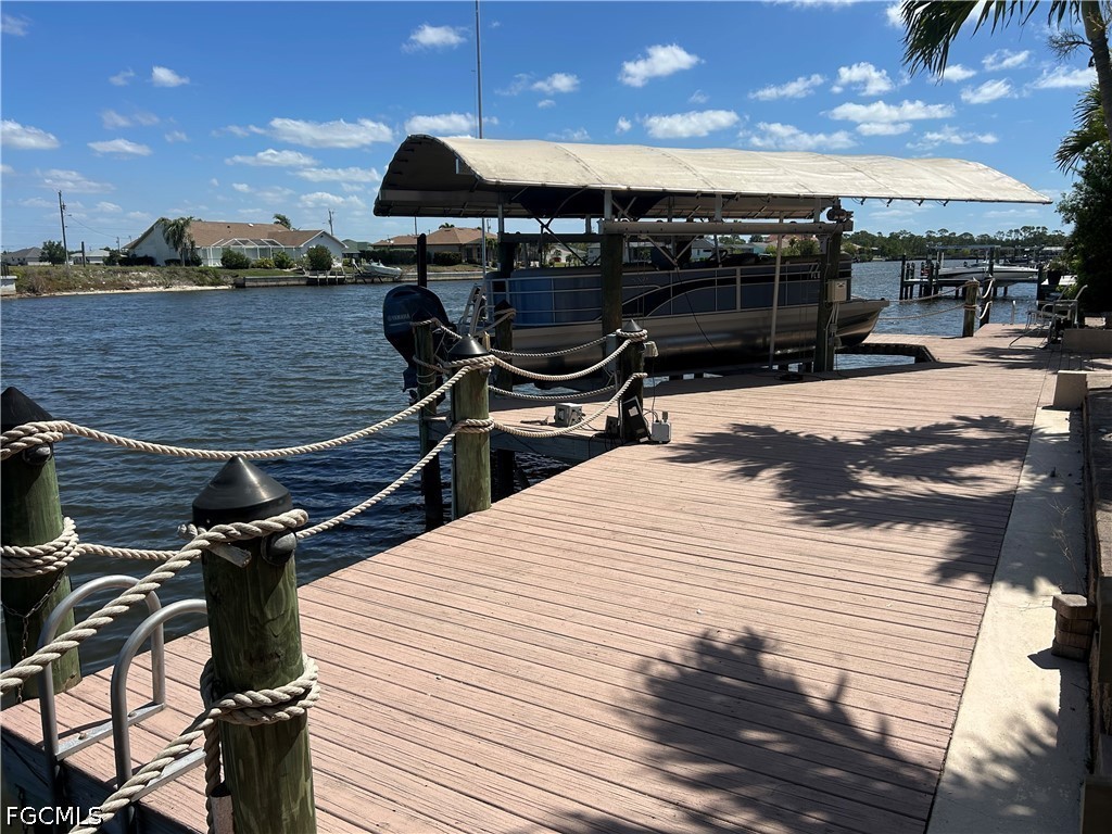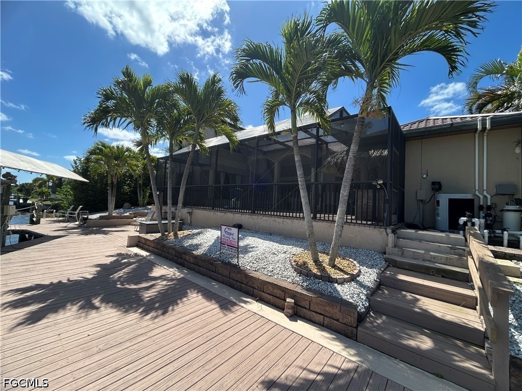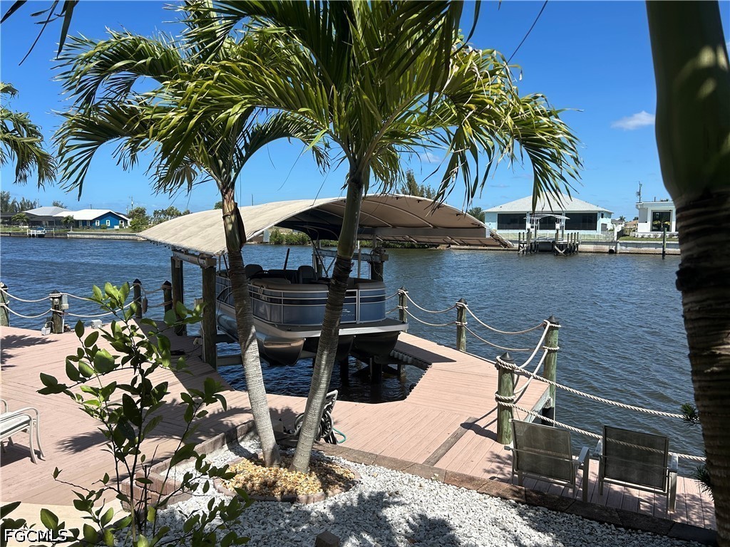 WELCOME to “ Cape Oasis” - WATERFRONT LIVING ON DIRECT GULF ACCESS CANAL. THIS HOME HAS IT ALL! METAL ROOF, 23 SOLAR PANELS X 400 WATTS per PANEL ( no payment balance). GOURMET KITCHEN EQUPT with GAS STOVETOP & ELECTRIC OVEN GRANITE COUNTERTOPS, WALK IN PANTRY, STAINLESS APPLIANCES, 42 in. WOODEN CABINETS & ISLAND. CUSTOM WHITE SHUTTERS THROUGHOUT THE HOUSE. PRIVATE HALLWAY TO STUDY/ OFFICE & HALF BATH. AMPLE GREAT-ROOM LEADING TO OASIS STYLE LANAI - offering THE OUTDOOR KITCHEN/TIKI BAR & HEATED POOL/SPA ( pool & spa operations controlled via WiFi) & SPECIAL TEMPERATURE CONTROLLED POOL CLOSET/ STORAGE. MASTER SUITE ( 1st FLOOR) HAS A SPACIOUS WALK IN CLOSET & LUXURIOUS MASTER BATH with WALK THRU DOUBLE SHOWER, LARGE TUB & VERY LARGE DOUBLE VANITY with MAKEUP STATION. TWO MORE GUEST BEDROOMS ( 1st floor), 1 with PRIVATE BATH. HALL BATH HAS LINEN CLOSET AND DOUBLE VANITY. AN ADDITIONAL CLOSET IN THE HALL FOR EXTRA STORAGE. LAUNDRY ROOM HAS CABINETS AND SINK. UPSTAIRS ( above the main bedroom) IS A BONUS ROOM with a 1/2 BATH BEING USED AS 4TH BEDROOM… IT OFFERS SPECTACULAR VIEWS of THE WATER. R/O SYSTEM for THE ENTIRE HOUSE & 3 CAR GARAGE, DOCK AND BOAT LIFT. HOME IS WELL EQUIPPED with A VARIETY of HURRICANE SHUTTERS (some electric & some manual -accordion style). THIS IS A MUST SEE IN PERSON!!!