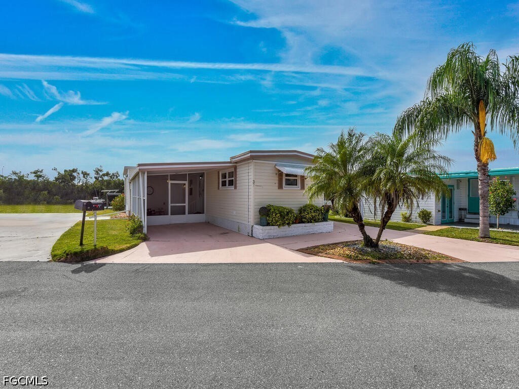 MOTIVATED SELLER! PRICED TO SELL. Hard to find gulf access property on the Orange and Caloosahatchee Rivers. Located in the resident owned Orange Harbor 55+ community the home is perfectly situated close to 75 and downtown Fort Myers directly off Palm Beach Blvd. You won't be paying high lot rent fees because you own the lot! This fully furnished two bed, two bath home is freshly remodeled (2023) with LVP floors, brand new stainless steel appliances, walk-in showers in both bathrooms, and beautiful waterfront views of the manatees swimming down the Orange River from your private deck. NEW Foam Insulation on roof and underlining 2024. The home includes direct gulf access and your own private boat lift. There is a large attached shed with plenty of storage, screened-in patio, dual carports with enough room for 3 cars and a golf cart. Orange Harbor is a professionally managed, secure, gated, pet friendly community that has no shortage of amenities with two private boat launches, fish cleaning stations, on site boat storage, resort style pool, block parties, clubhouse, bocce ball, pickleball, horse shoes, dog park and many more. You won't find a better price for waterfront gulf access property with a private dock and boat lift anywhere in Lee County.