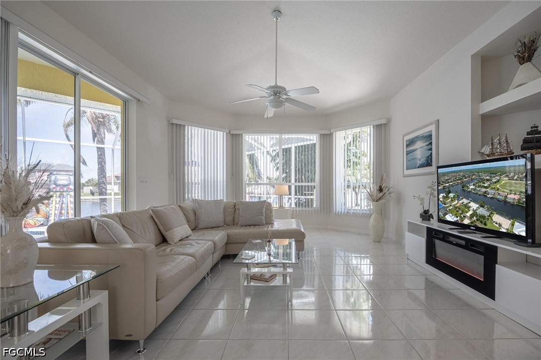 Boasting over 2,200 square feet of living space, this home is designed for those who appreciate an airy, open atmosphere. The high vaulted ceilings and expansive sliding glass doors create a seamless flow between indoor and outdoor living. The spacious floor plan features a beautiful electric fireplace, adding a touch of class and warmth to the main living area—perfect for quiet evenings at home. Large windows throughout ensure the home is bathed in the famous Florida sunshine, highlighting the "million-dollar views" of the water. Enjoy a large, screened-in lanai featuring a heated swimming pool, ideal for year-round exercise and relaxation.