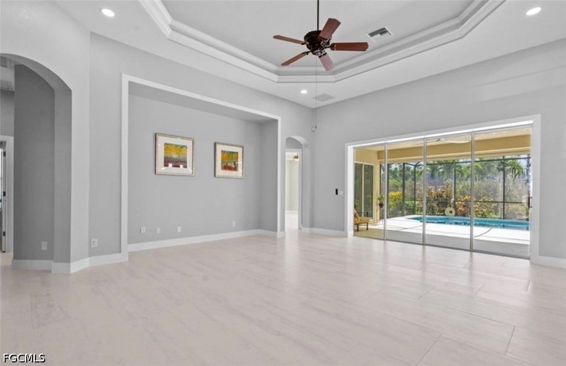 Enjoy your morning coffee in the bright breakfast area overlooking the pool, perfect for indoor-outdoor living. Situated on one of the largest lots in Coco Bay, this unique 0.40-acre triangular property provides ample space for outdoor activities and entertaining.