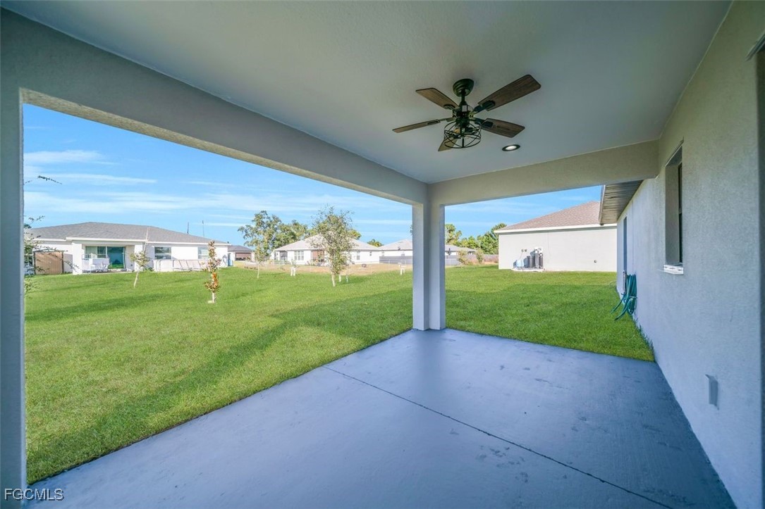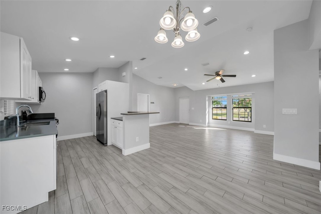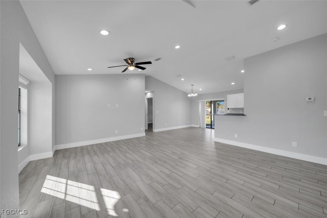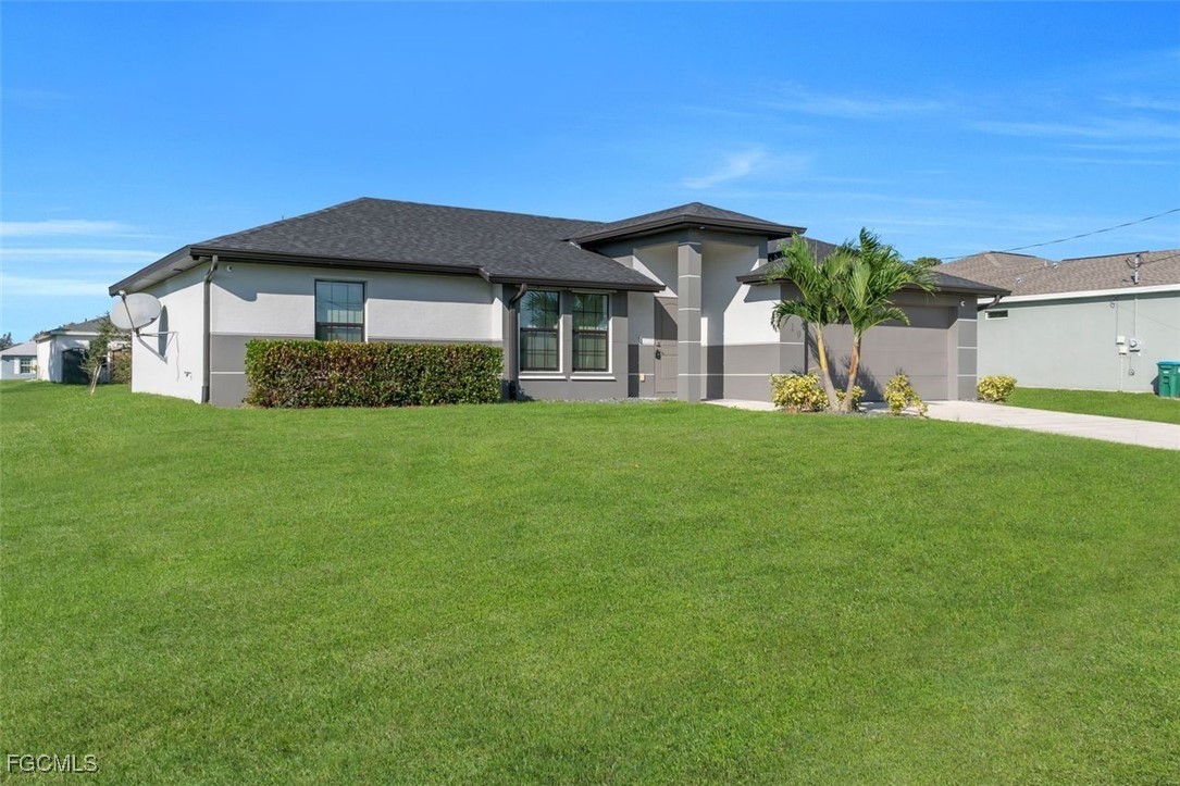 Step inside to an inviting open concept floor plan with tile flooring throughout, neutral tones, and plenty of natural light. The kitchen features stainless steel appliances, quartz countertops, and a breakfast bar that opens to the living and dining areas — perfect for entertaining or relaxing. The spacious primary suite includes a private bath and walk-in closet, while the two additional bedrooms provide plenty of space for family, guests, or a home office. A two-car garage and covered lanai add convenience and functionality. Situated close to shopping, dining, and major roads, you’ll have easy access to everything Cape Coral has to offer while enjoying the peace of a residential neighborhood.