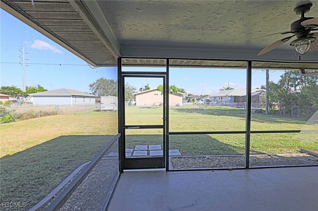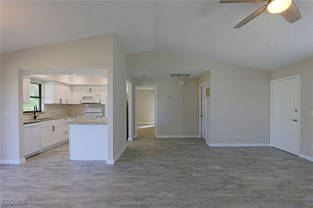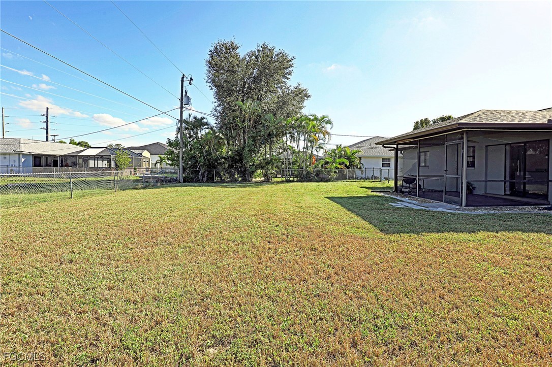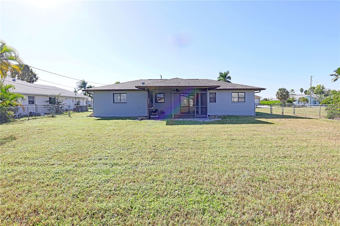 Welcome to this charming 3-bedroom, 2-bath home located in the heart of Cape Coral! This well-maintained property features an open floor plan with a vaulted living room ceiling, tile flooring, granite countertops throughout, and plenty of natural light. The kitchen offers stainless steel appliances and ample cabinet space, perfect for everyday cooking. The split-bedroom layout provides privacy, with a spacious primary suite featuring a walk-in shower. Enjoy outdoor living in the screened lanai overlooking the large fenced backyard. Additional features include a two-car garage, fresh interior paint, and updated fixtures. Conveniently located near shopping, dining, parks, and major roadways. Lawn care included. Pets considered with owner approval. Available for immediate occupancy — don’t miss this centrally located Cape Coral gem.
