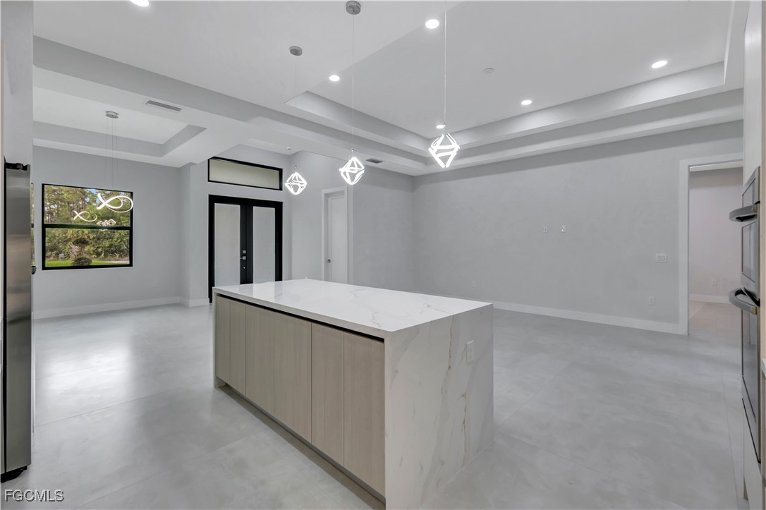 READY TO MOVE IN! Discover the unique Nova model featuring 4 bedrooms and 3 full-bathrooms located in the very desirable Golden Gate Estates. The property sits on a 100% upland lot—FULLY USABLE. Offering 1,774 sq. ft. of A/C living space and nearly 3,000 sq. ft. under roof, the home showcases luxury details throughout, including 48" x 48" imported porcelain tile, soaring ceilings, and impact-resistant windows and doors. The custom kitchen features quartz countertops, a dramatic waterfall island, soft-close cabinets, and top-of-the-line stainless steel appliances, complemented by custom closets in every room. Enjoy an extended paver driveway with extra space, caminery, and a spacious extended patio with a built-in outdoor kitchen—perfect for entertaining. The reverse osmosis water system delivers purified water throughout the entire home. Located in a peaceful section of Golden Gate Estates, with plenty of room for a pool or guest house and just minutes from Naples amenities, top schools, and beaches. NO HOA!