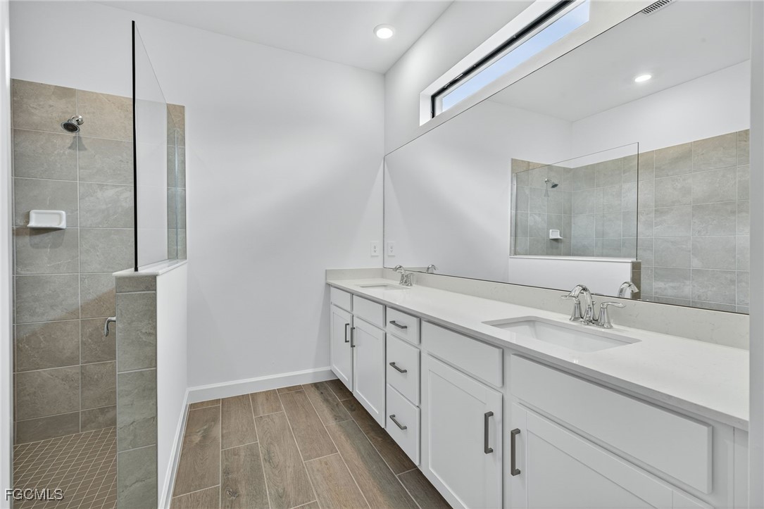 The owner’s suite offers a generous walk-in closet and a private en-suite bath with a large walk-in shower. The guest suite includes its own full bath, while two additional bedrooms share a third bathroom—perfect for families or guests.