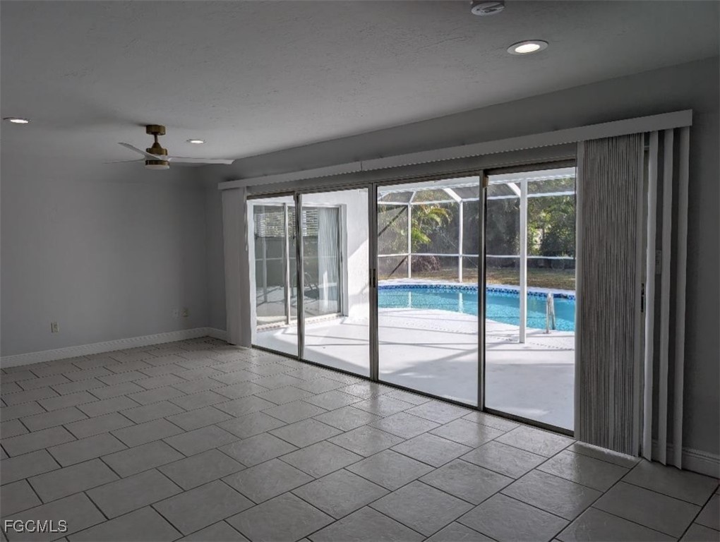 Beautiful pool home in the heart of Cape Coral. This home is like new with kitchen and bath recently updated and tile floors throughout. Large freeform pool was just refinished with new glass tile and surrounded screened lanai with southern exposure. Huge storage shed in your private yard. Pool service is included in rent.