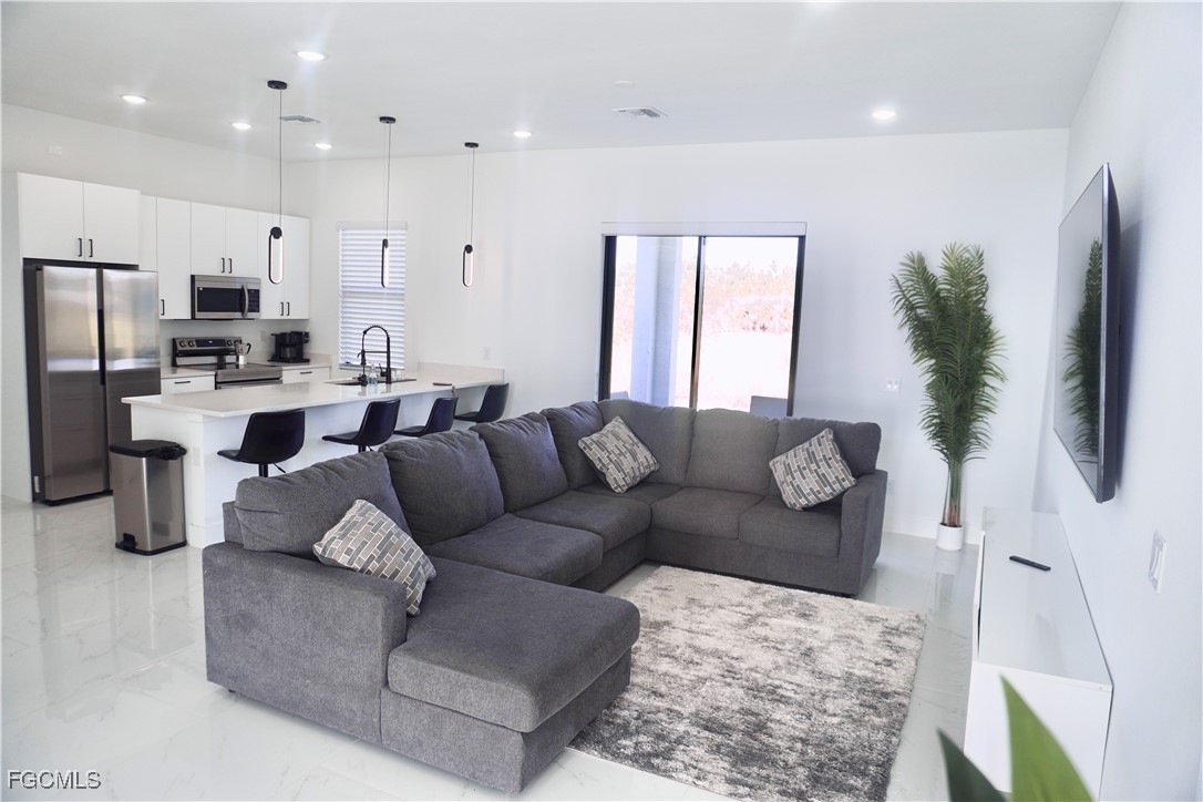 Be the first to live in this modern, fully furnished single-family home located in a desirable area of Lehigh Acres. This new construction rental features 3 bedrooms plus a den, 2 full bathrooms, an open layout with volume ceilings, impact-resistant windows, brand-new appliances, and porcelain tile flooring throughout. Thoughtfully furnished with modern décor, this move-in-ready home also includes a reverse osmosis water system for fresh, clean water with no well water odor. Enjoy the comfort, style, and peace of mind of a brand-new furnished home. Schedule your showing asap!