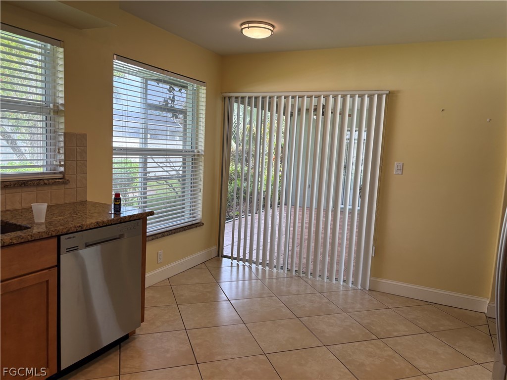 Entire home is completely Tiled, updated Kitchen with wood cabinets, Granite counters, Newer Stainless Steel appliances, Eat in Kitchen with slider to Screened lanai. Living/Dining open floor plan, sliders open to screened Lanai from Living Master and Kitchen. Beautiful setting for entertaining.