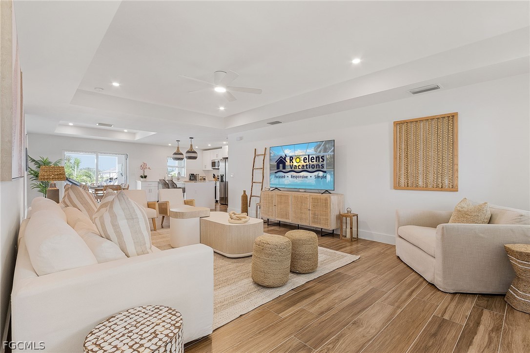 The home offers: High-end wood-look tile flooring flows throughout the home, accented by tray ceilings, recessed lighting.