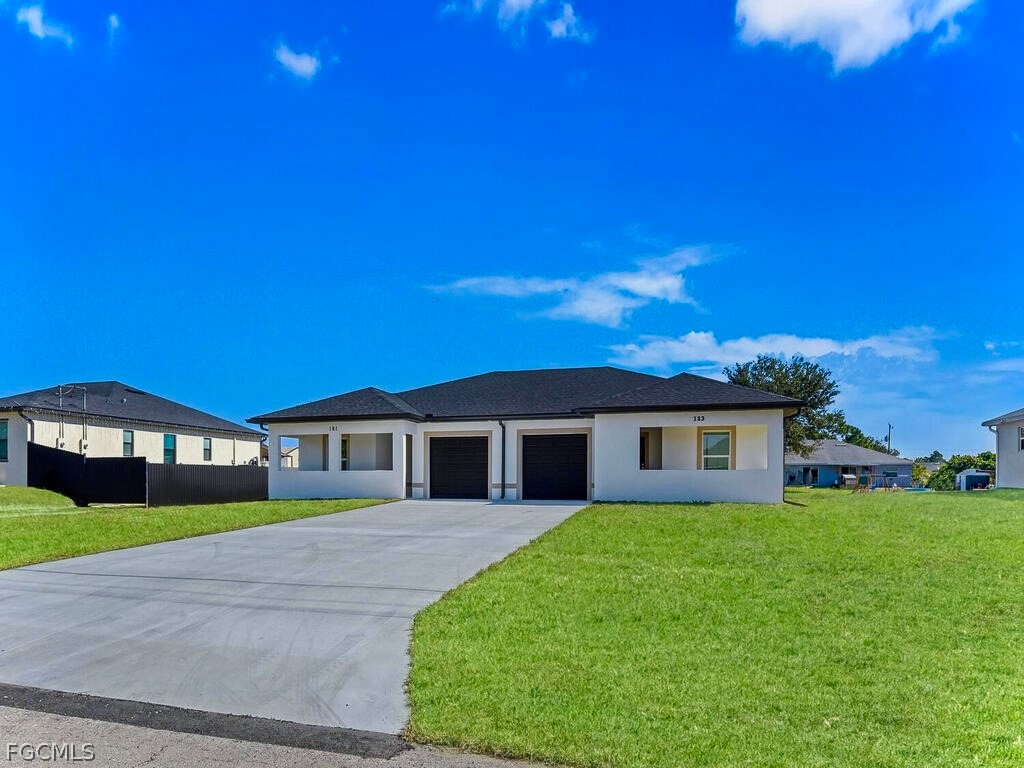 Welcome to this magnificent 2026-built 6-bedroom, 4-bath multi-family home, nestled on a quiet street just minutes from Fort Myers and all major amenities. These highly desirable floor plans feature custom tiled front patios, wood-plank tile flooring throughout, impact-resistant windows and doors, and open great rooms anchored by a granite breakfast bar, soft-close shaker cabinetry, crown molding, and a built-in pantry. The kitchens are complete with stainless steel appliances and open to triple sliding glass doors leading to a spacious back patio with epoxy flooring, ideal for entertaining. Bathrooms showcase glass-framed barn-door walk-in showers, oversized vanities, custom mirrors, and modern recessed lighting. Additional highlights include laundry rooms under air, premium fixtures, appealing bypass closet doors, walk-in closets, extra storage closets, and epoxy-finished garage flooring. This property is move-in ready and ideal for investors seeking strong rental income or owner-occupants looking to live in one unit while renting the other. A prime opportunity—schedule your private showing today.