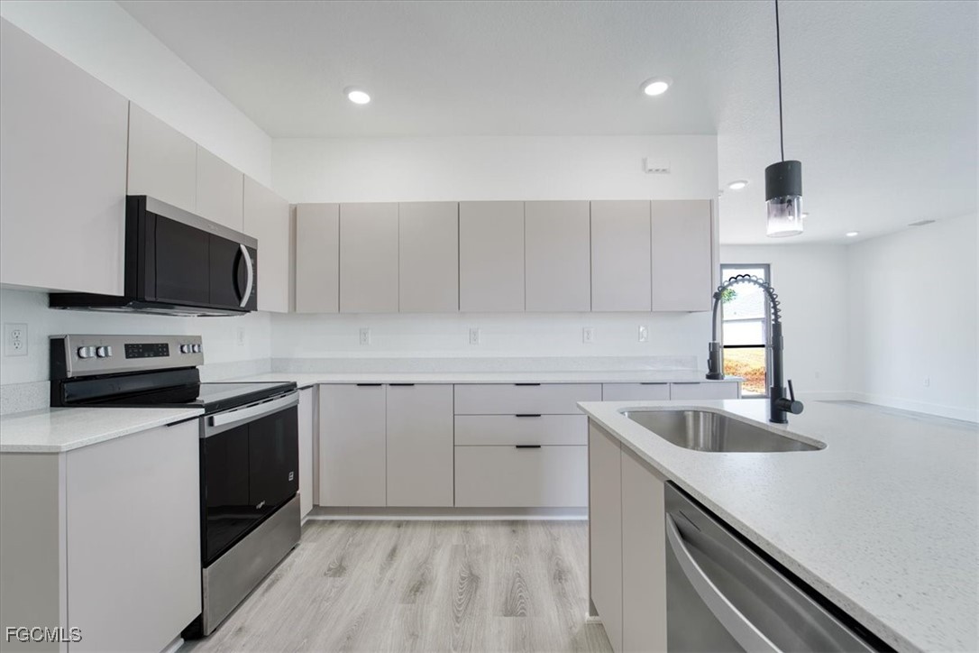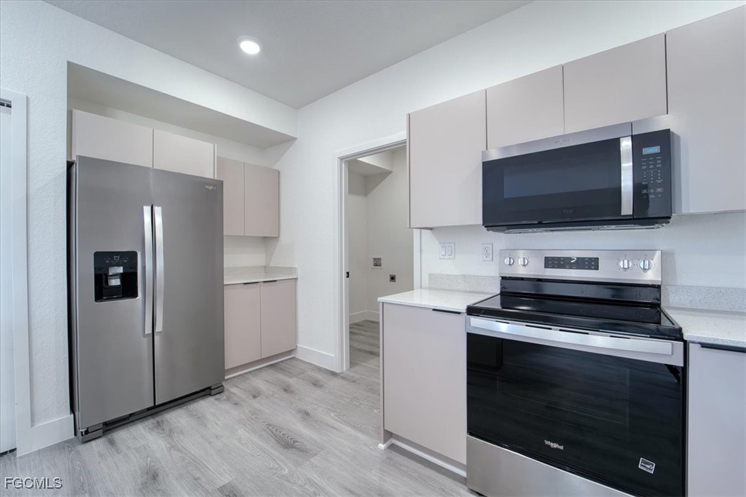 Discover the comfort and convenience of this newly built home located in LaBelle, Florida. Designed with efficiency in mind, this 1,324 sq. ft. residence offers a welcoming layout paired with upgraded finishes that elevate everyday living. Highlights include 9' ceilings, durable luxury vinyl flooring throughout, quartz countertops, custom kitchen cabinets with deep pull-out drawers, and a stylish modern front door that enhances the home’s curb appeal. This home delivers these upgrades at a great price point, offering strong value for buyers seeking quality new construction.