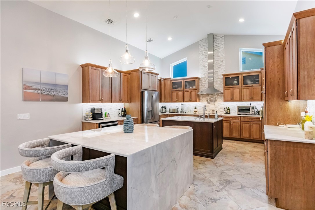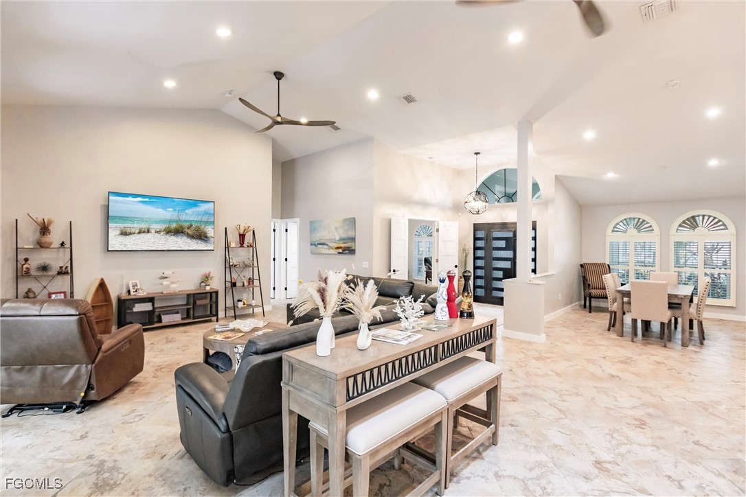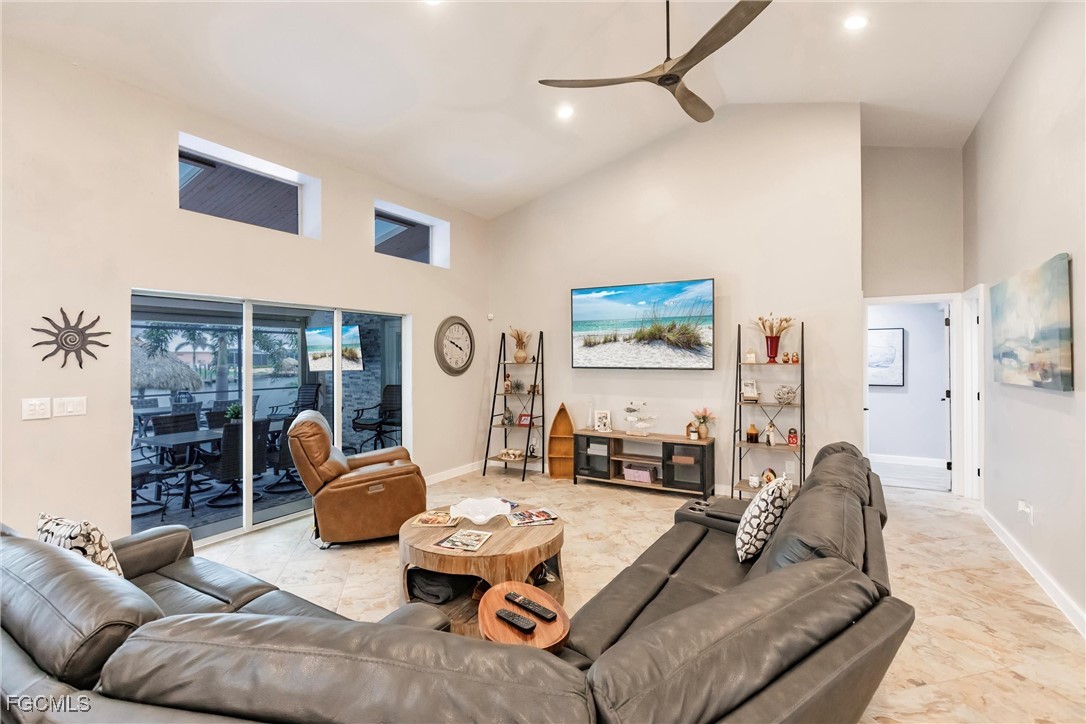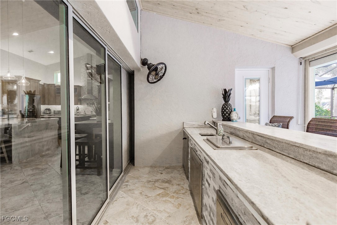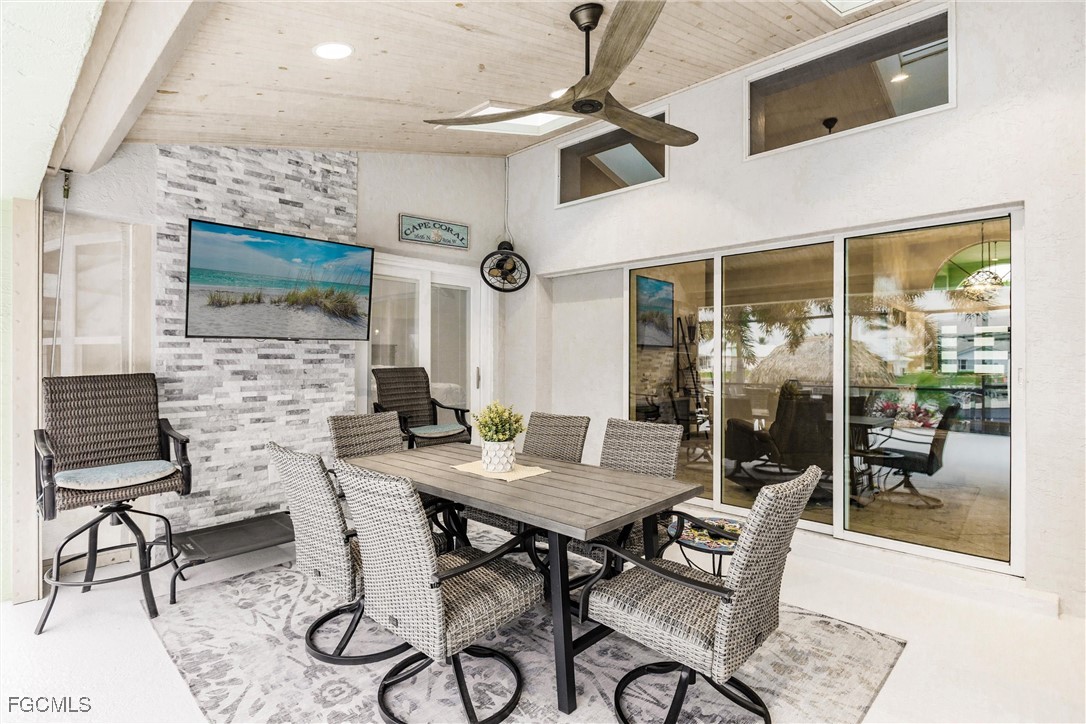 Nestled in the quiet, highly desirable Rose Garden neighborhood (walking distance to Rotary Park and Tarpon Point), this meticulously maintained gulf access home is a boaters and entertainers paradise! It is located on the 220-foot-wide, 16 ft deep, Citrus canal just minutes from Tarpon Point Marina and the river and gulf beyond. Property includes a 40 ft by 15.5 ft slip with 12,000 lb lift and surrounded by Trex decking and an extra-long canopy, tropical landscaping, and a newly grassed Tiki hut complete with electric and fans so you can enjoy sunrises and sunsets all year! This immaculate home is perfect for entertaining! It includes a oversized, completely screened lanai with saltwater heated pool, jacuzzi, LED lighting and waterfall. The covered lanai area is equipped with a wet bar and separate seating area with outdoor TV. Entering this home you immediately see the breathtaking water views and the wide open great room with 10 ft cathedral ceilings. There is an huge chef’s kitchen complete with custom cabinetry, two islands with a Quartzite waterfall counter and direct water line for instantly filled coffee machine. Custom primary bathroom was recently updated with walk-in closet, marble tile, soaking tub, shower, floating vanity with dual sinks and Kohler fixtures, huge master bedroom with premium vinyl flooring, sitting area with water views and access to pool area through custom French doors. Each of the 3 bedrooms has its own bath attached! So guests won't have to share. Lots of recent updates: A/C 2023, new roof and soffits 2023, skylights 2023, Plantation shutters, oversized tile on the diagonal. Finished garage with epoxy floor coating and storage shelves, circular stone paver driveway with mature landscaping and lighting. Furnishings are negotiable. No HOA fees! Assumable flood policy saves you lots of $$!