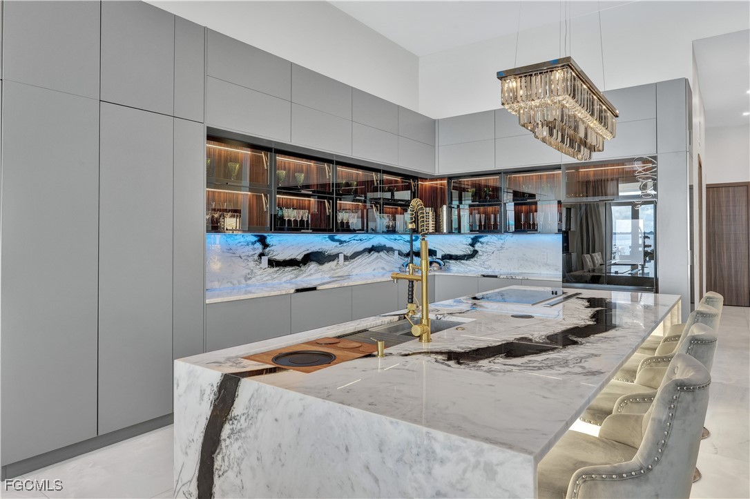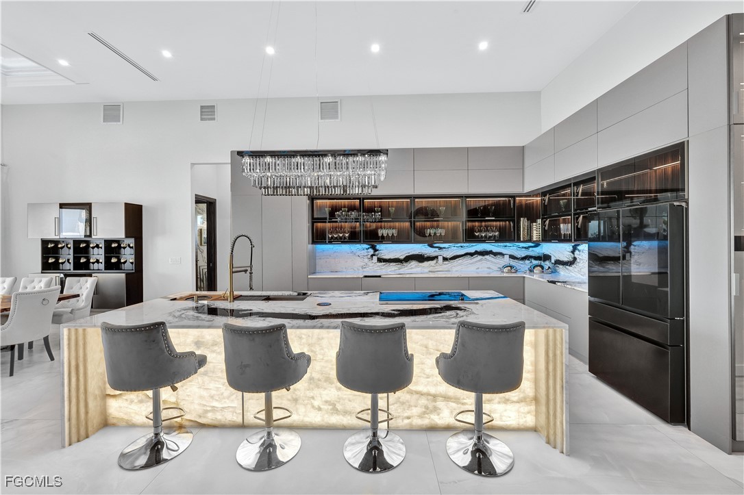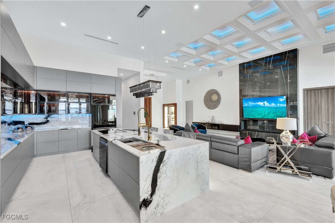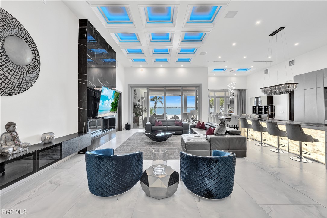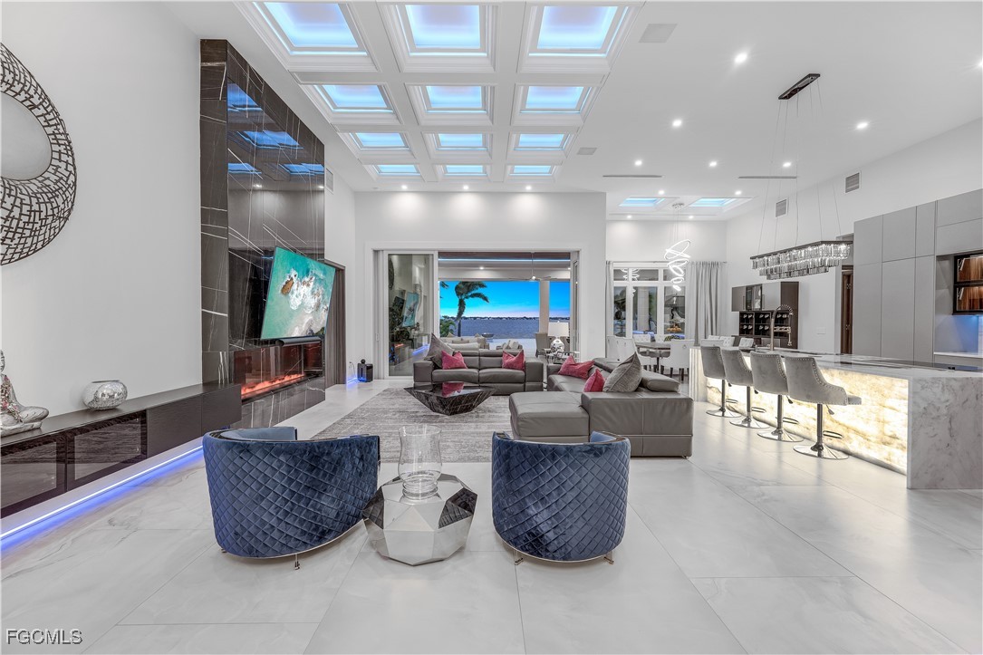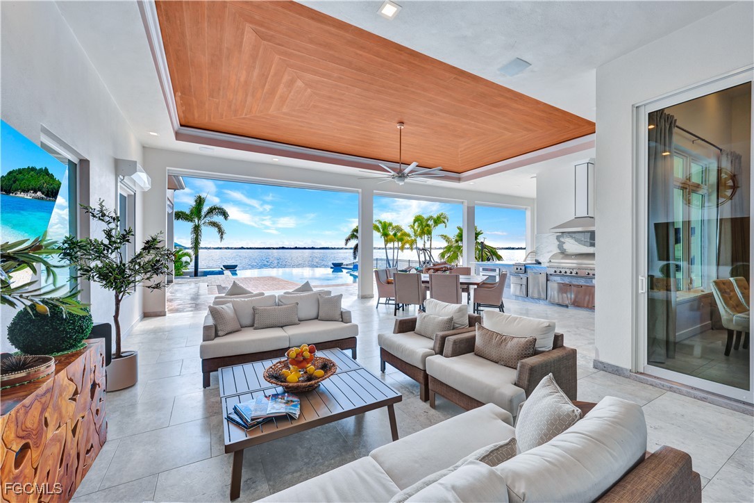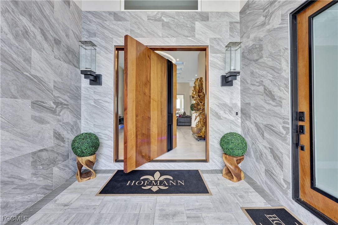 Spectacular Riverfront Estate: More than 1/2 acre lot (21,824sqf.) Discover unparalleled luxury in this stunning contemporary masterpiece situated on the prestigious Caloosahatchee River. This architectural gem seamlessly blends indoor and outdoor living, creating an extraordinary waterfront sanctuary. Distinctive Features Commanding river views from every major room 6 luxurious en-suite bedrooms including one separate guest suite including an office with separate entrance 6 bathroom plus a powder room and a full Cabana bath Soaring 14.5-foot ceilings throughout Smart home automation system with integrated Lutron LED lighting and Sonos sound system Electric shutters for ultimate security and convenience Statement pivot entry door with dramatic fire features Butlers kitchen Custom crystalo LED backlid wine cellar. Resort-Style Outdoor Living Spectacular saltwater pool with infinite edge, swim-up bar, sun shelf, and beach entrance Elevated spa with fire bowls Full outdoor cabana bath Professional outdoor kitchen featuring premium DCS appliances Elegant travertine outdoor flooring Meticulously landscaped grounds with mature palm trees and outdoor lighting State-of-the-art whole-house Sonos audio system Custom Lutron lighting design inside out Expansive pool terrace perfect for entertaining Garage & Storage: Oversized 6 car garage with 16' doors accommodating RV/boat storage with A/C Professional-grade car lift (8k pounds) Designer epoxy flooring in striking metro black and blue Additional storage level above garage(1,300 sq ft) Rod and reel storage Premium Finishes Imported large-format tile flooring Custom granite countertops and backsplashes Designer fixtures and appointments throughout Vapor fireplace Premium LED lighting system Super energy efficient Smart home with spray foam filled walls and complete house spray foamed roofs Perfect for the maritime enthusiast Direct Gulf access, catch Snook and Tarpon right in front of your Estate This extraordinary residence represents the pinnacle of modern waterfront living, where luxury meets functionality in perfect harmony. Every detail has been meticulously curated to create an unparalleled living experience.