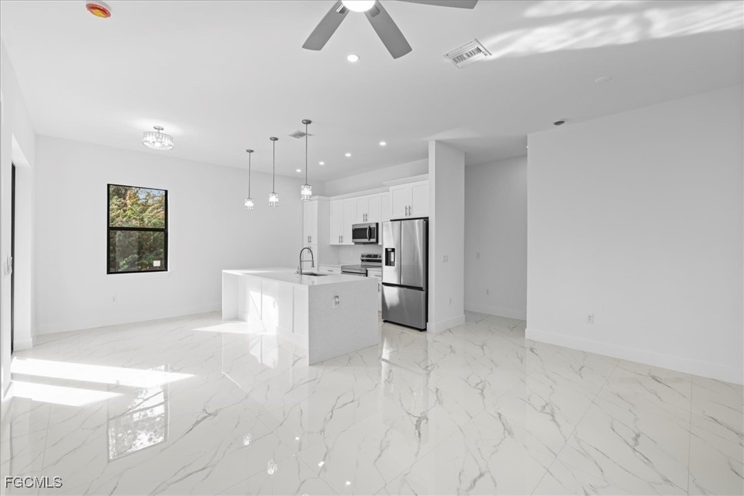 Corner lot new construction offering 3 bedrooms and 2 bathrooms, designed with completely modern finishes throughout. This home features a sleek, contemporary interior with an open layout and abundant natural light. The brand-new kitchen is equipped with all-new appliances and modern finishes. All windows and doors are hurricane-impact for added safety and peace of mind. Conveniently located near Copperhead Golf Club, Riverdale High School, and Southwest Florida International Airport, making this home ideal for both everyday living and easy travel.