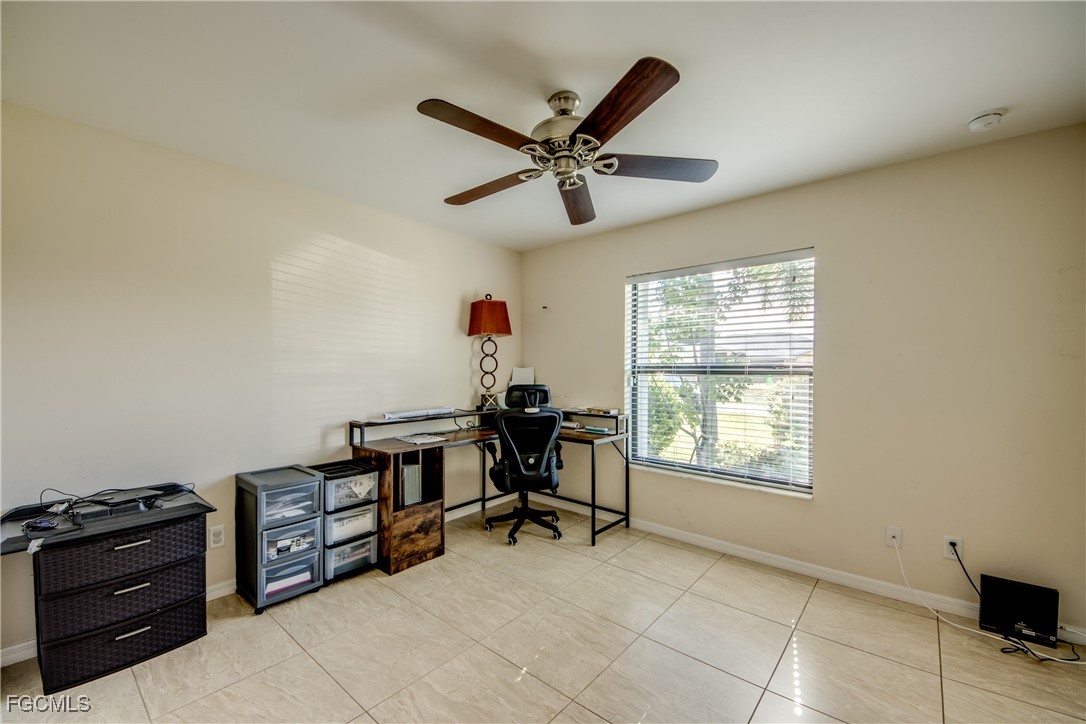 Enjoy this beautifully maintained 2017-built 3-bedroom, 2-bath home located in the heart of Cape Coral. The kitchen features wood cabinetry, stainless steel appliances, a center island, and granite countertops—perfect for both everyday living and entertaining. The desirable split floor plan offers privacy for everyone. The spacious primary suite includes a large walk-in closet, while the en-suite bath boasts dual sinks and a generous walk-in shower. Additional highlights of the home include vaulted ceilings, tile flooring throughout, an indoor laundry room, and storm shutters. Relax on the screened-in patio overlooking a backyard with plenty of room to add a future pool. Located in a sought-after neighborhood in SE Cape Coral, just off Del Prado Blvd, this home is conveniently close to shopping, dining, entertainment, schools, and Fort Myers. Also, this property is less than 10 minutes away from Cape Corals Four Mile Cove Ecological Preserve (Cape Corals second-largest preserved green space)! Schedule your showing today!