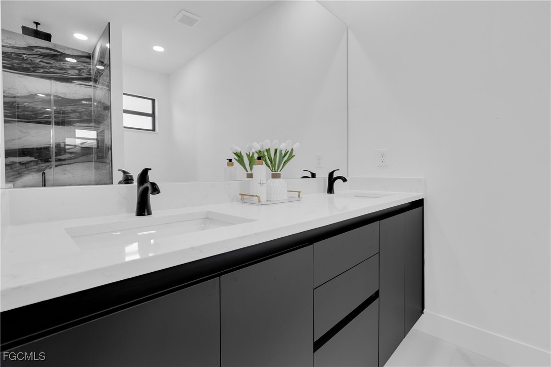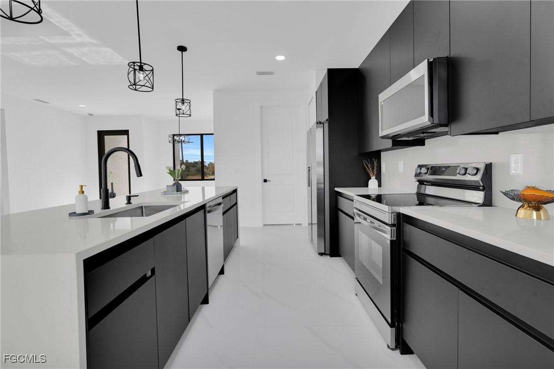 Beautiful New Construction Home in the best area in Lehigh Acres!!! Three bed, two bath, two car garage. calacatta quartz counters tops in kitchen and baths, impact doors and windows with Energy System Low-E keeping your home comfortable year-round while saving energy costs. Stainless-steel appliances, imported porcelain tile throughout, sprinkler system, corner lot. Easy access to Fort Myers, I 75, 10 minutes to RSW International Airport, close to school, shops, restaurant etc... Come to check this out and make your offer today!!!