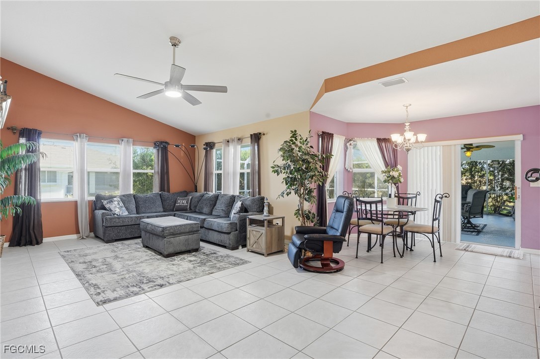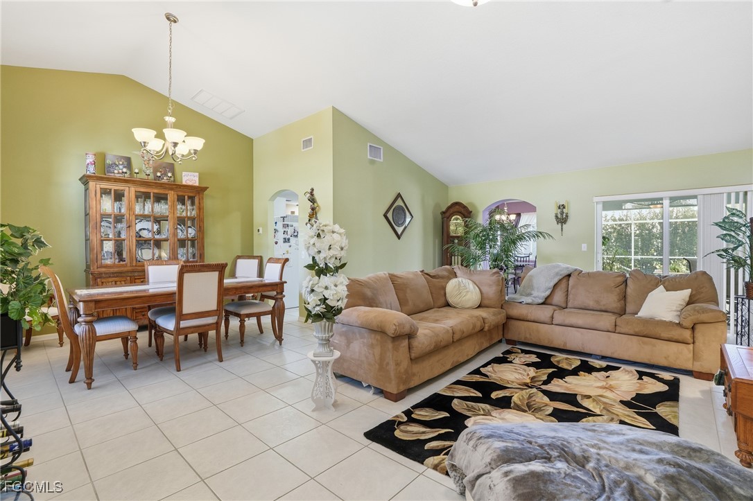 Welcome to this beautifully maintained 2006-built single-family POOL home in Cape Coral. Offering over 2,200 sq ft of spacious living, this property features 3 oversized bedrooms, 2 bathrooms, two family rooms, and vaulted ceilings that make the home feel bright and open. The primary suite includes a large soaking tub for ultimate relaxation. This home also comes partially furnished for added convenience. Enjoy peace of mind with NO assessments, a LOW-cost flood insurance policy, a 2023 roof, and a 2019 A/C.
