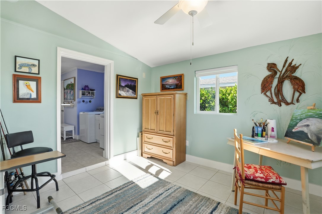 This can be your new reality- a waterfront property boasting cathedral ceilings, a new 2021 roof, impact windows and doors, and no HOA fees, on a canal with a 90 degree curve- a natural break in the wake from the boating channel- your seawall and boats will have the highest level of protection on the island! The still waters are a haven for birds and sea life. This gem shows very well and reflects pride in homeownership. Great amenities including a boat ramp and dock access, hiking and biking trails on nearby Pine Island, and the best restaurants are here on the island with you. Convenience is key with grocery stores, waterfront dining, and shopping just minutes away.