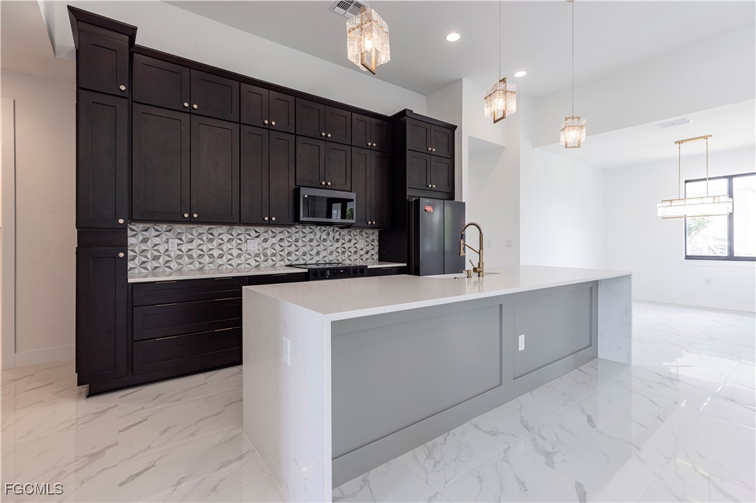 Welcome to this stunning 4-bedroom, 2-bathroom home offering 1,732 square feet of thoughtfully designed living space, located on a Corner Lot! Step through impressive 8’ impact-rated double front doors into a welcoming foyer that leads into the spacious open floor plan home. The bright luxurious living space is perfect for entertaining and everyday living! The kitchen boasts 9-4' Plywood cabinetry, a large center island with quartz countertops and waterfall quartz edges, complete with black on black matte finish Samsung appliances. Soaring 13’ ceilings in the great room and 9’4” to 12’ ceilings throughout the home create an open airy feel. The flexible layout includes a 4th bedroom that can easily serve as a home office. The master suite offers two walk-in closets and an en-suite bath with dual vanity sinks and a walk-in shower with multiple showerheads. At the back, 8’ impact-rated double doors lead out to a private tiled lanai ideal for entertaining. Additional features include a 2-car garage with 8 ft high grade door, and large format tile flooring throughout. Don’t miss your chance to live in this stylish and functional home — schedule your visit today! *Sample Photos