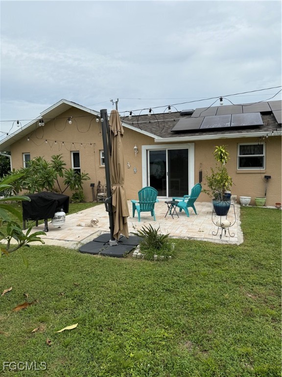 Perfect starter or retirement home. You will love this clean, cozy, charming and solar-powered 3/2/2 home in a great area of the NW Cape. Featuring hurricane impact windows and slider. New roof 2023 and solar was installed in 2023 as well. Solar loan will be paid off at closing and leave buyer with a money-saving $25 LCEC electric bill per month!!! Kitchen has everything within reach and a breakfast bar for your morning coffee. Walk-in shower in the master bath. Mostly tile for easy cleaning and carpet in bedrooms. Fenced yard and lovely pavered open seating area in the back of the home which is surrounded by flowers, plants, avocado and mango trees. Enough space for a vegetable garden. Easy access to Santa Barbara, shopping and the bridges.