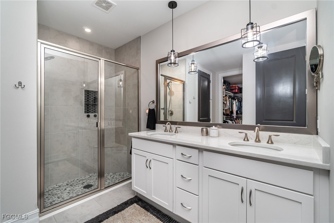 The primary suite is thoughtfully tucked away for privacy and comfortably accommodates a king-size bed. It features a spa-like ensuite with double vanities, an upgraded walk-in shower with designer tile and niche accents, a linen closet, and a custom walk-in closet.