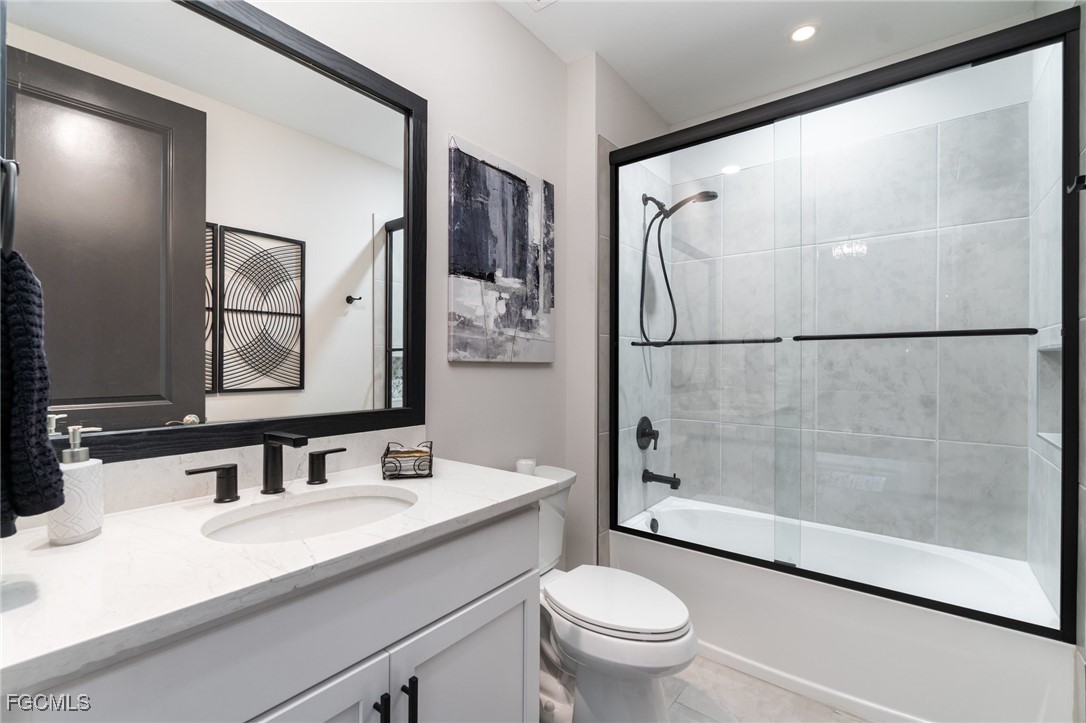 Three additional bedrooms share an updated full bathroom with an added modern glass shower enclosure, while the fourth bedroom—ideal as a guest suite, home office, or flex room—offers additional versatility.
