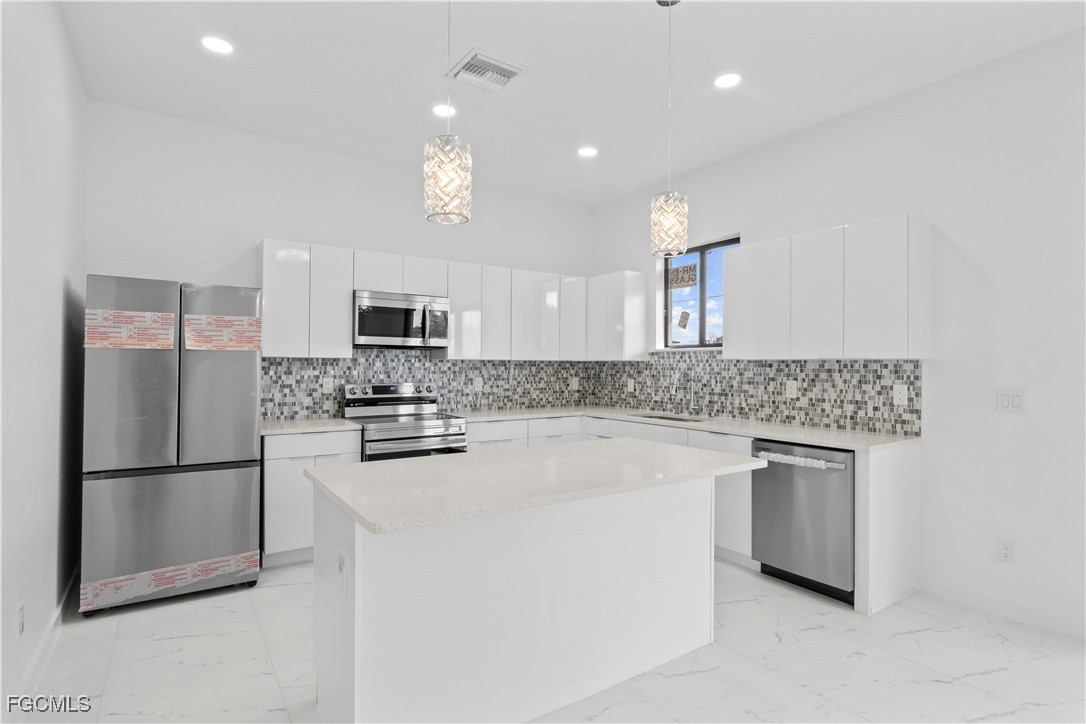 Discover this stunning new construction, move-in ready home located in the fastest-growing area of ??Cape Coral. Elegantly designed, it features 4 spacious bedrooms and 3 stylish bathrooms. Enjoy a gourmet kitchen with white cabinetry, tile flooring, and stainless steel appliances. A washer and dryer are also included for your convenience. The open layout seamlessly connects the living, dining, and kitchen areas, while the private backyard offers space for a pool and more. This home also features impact-resistant windows and doors, an automatic garage door, an irrigation system, and high-end finishes. Located in one of Cape Coral's fastest-growing areas, this property is ideal for families, seasonal residents, or investors. Plus, it includes a 1- to 2-year builder's warranty and 10-year structural coverage, offering you peace of mind. Don't miss this incredible opportunity to own a high-quality home in a booming location!