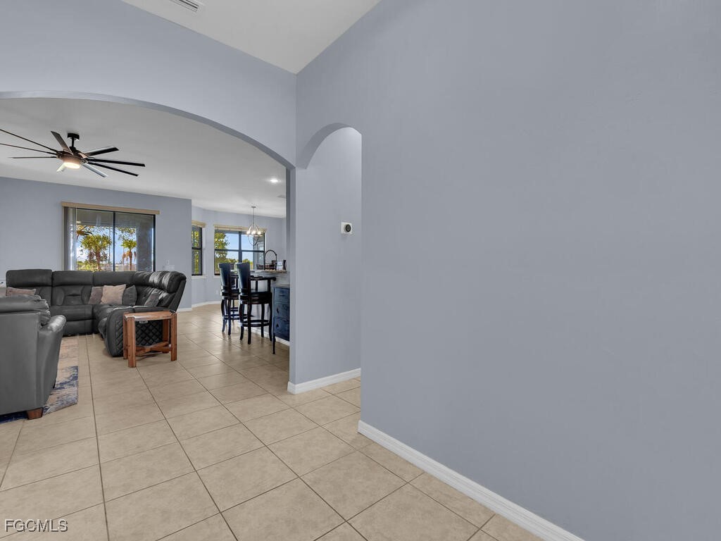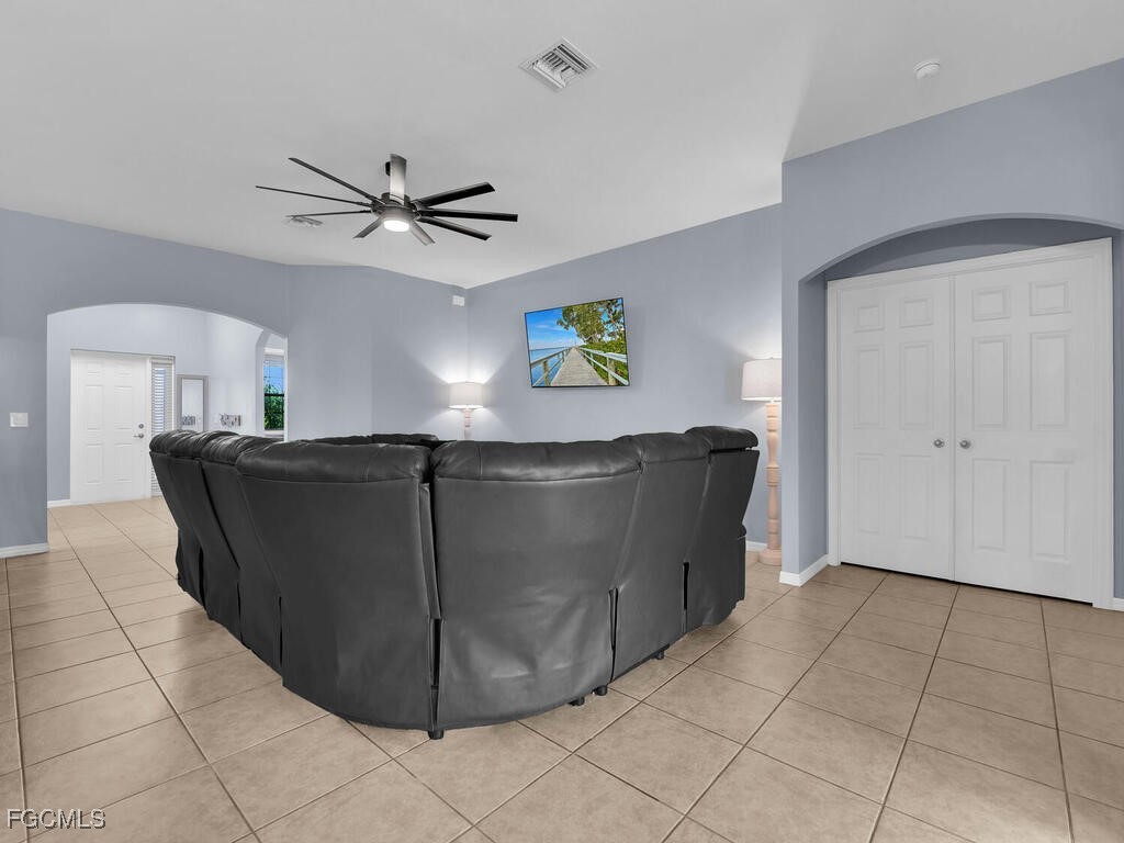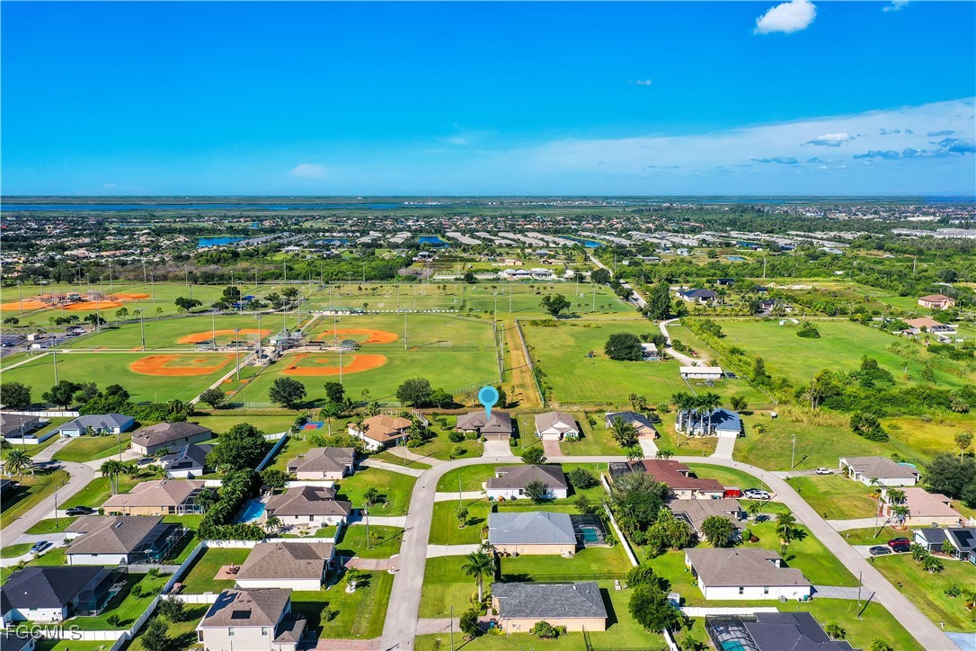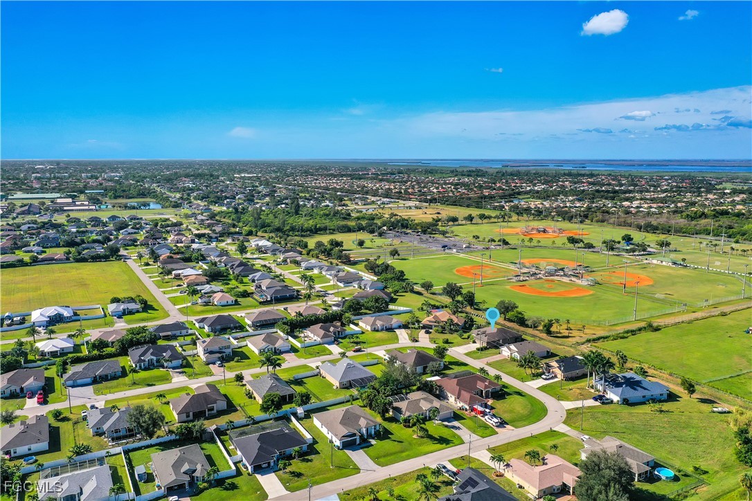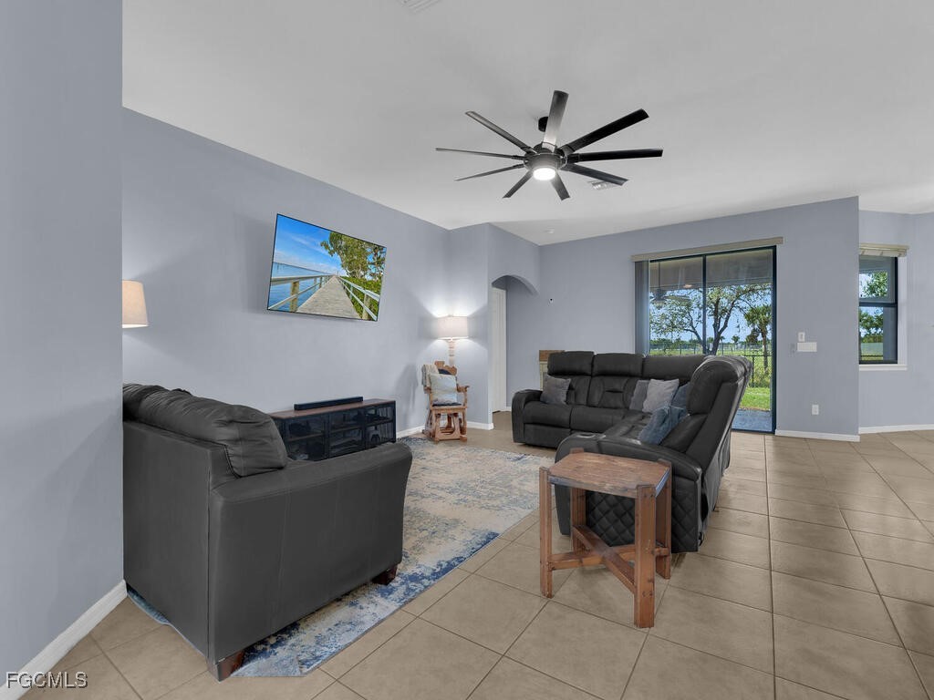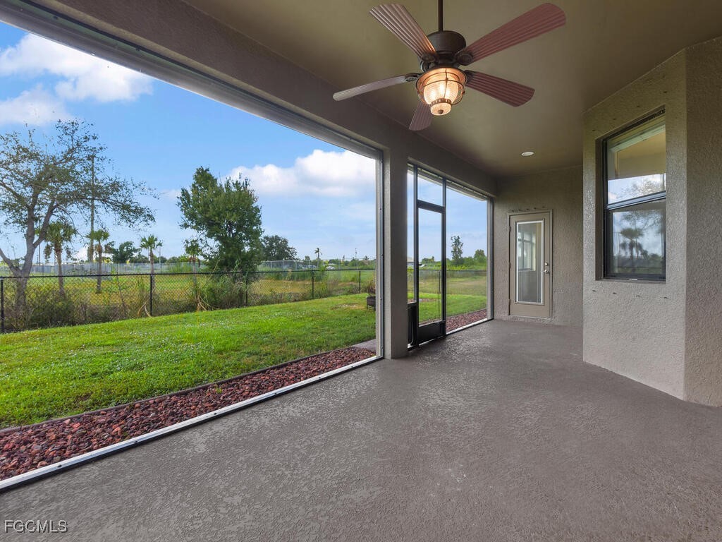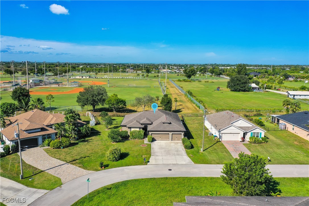 Fantastic 5 bedroom layout w/ WHOLE HOME generator! Situated on and irregular shaped lot giving you a wide backyard that has plenty of room for a playlet and/or a pool. The inside of this home offers a wonderful layout w/ great room design, screened front entry, split bedroom floor plan, wide galley kitchen, spacious master suite, 4 guest rooms (one with French door entry making it ideal for a home office or playroom), dining area w/ large windows, laundry room w/ shelving, attached 3-car garage, and screened rear lanai w/ picture window screening. You will be storm ready w/ the 22kw Generac generator (w/ wifi monitoring), hard wired with an automatic switch supplied by a 200 gal underground propane tank. In addition, there are electronic hurricane shutters for the entire home. Convenient location- backs up to a city park w/ sports fields, close to community boat launch & golf course, and has easy access to both the bridges to Fort Myers.