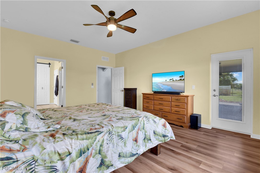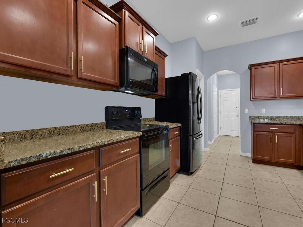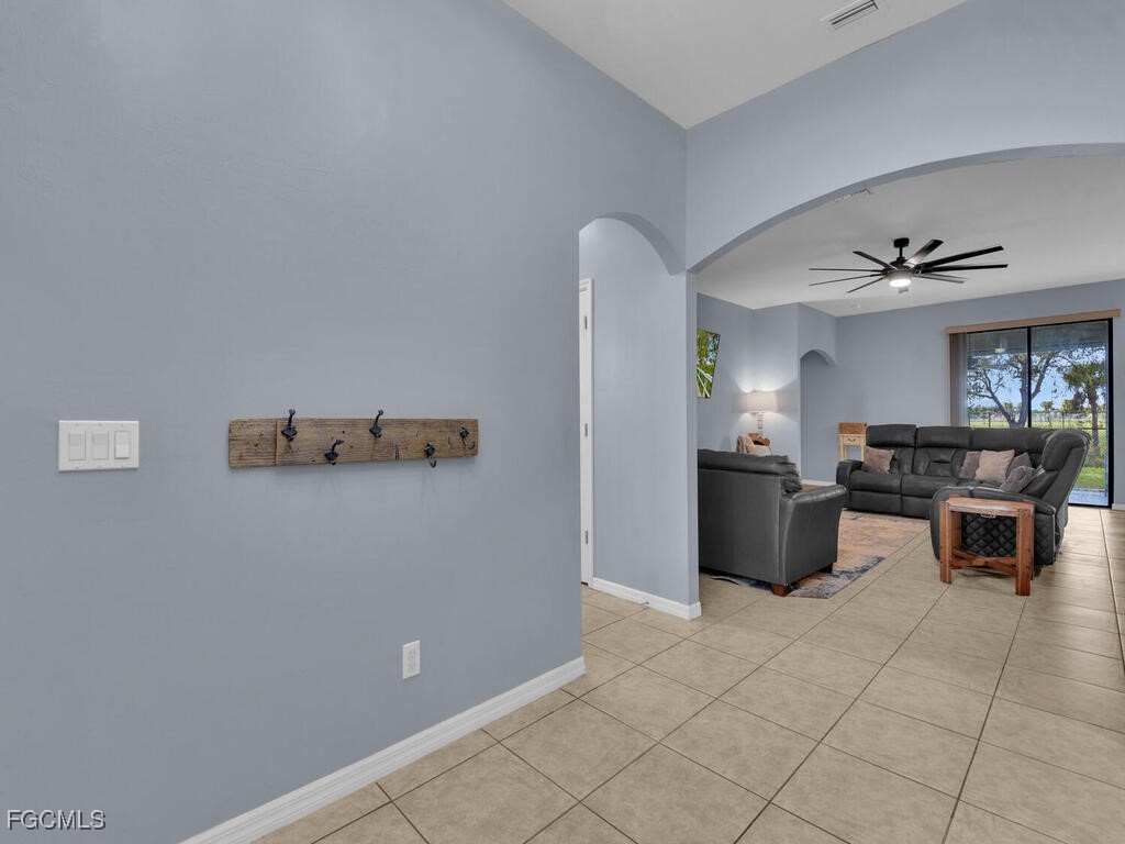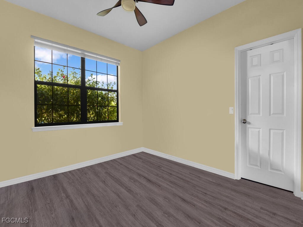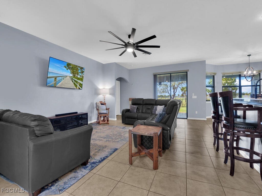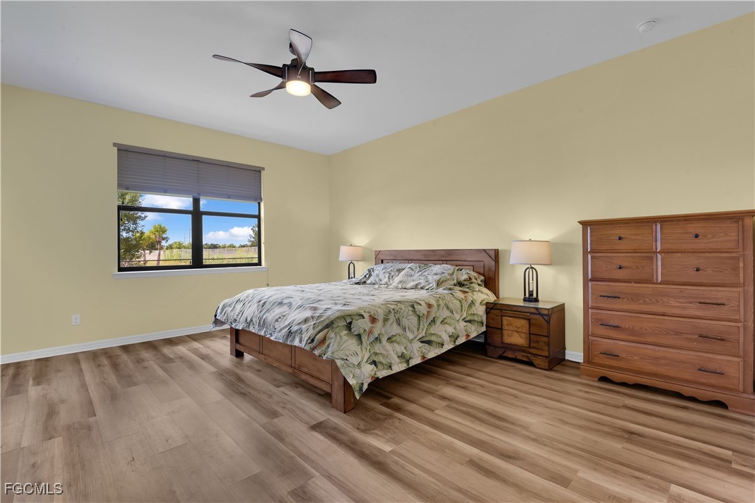 Fantastic 5 bedroom layout w/ WHOLE HOME generator! Situated on and irregular shaped lot giving you a wide backyard that has plenty of room for a playlet and/or a pool. The inside of this home offers a wonderful layout w/ great room design, screened front entry, split bedroom floor plan, wide galley kitchen, spacious master suite, 4 guest rooms (one with French door entry making it ideal for a home office or playroom), dining area w/ large windows, laundry room w/ shelving, attached 3-car garage, and screened rear lanai w/ picture window screening. You will be storm ready w/ the 22kw Generac generator (w/ wifi monitoring), hard wired with an automatic switch supplied by a 200 gal underground propane tank. In addition, there are electronic hurricane shutters for the entire home. Convenient location- backs up to a city park w/ sports fields, close to community boat launch & golf course, and has easy access to both the bridges to Fort Myers.