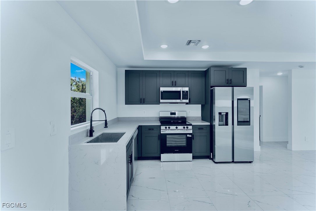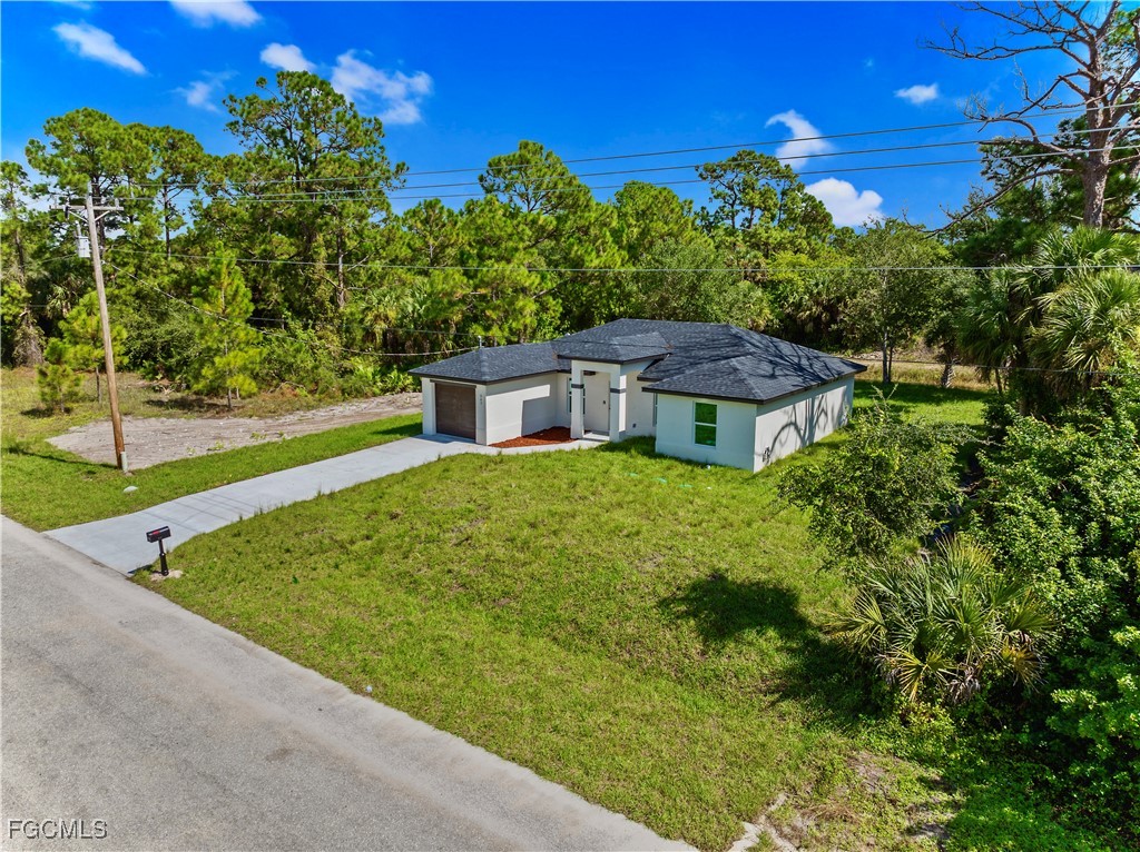 Welcome to this MAGNIFICENT BRAND NEW CONSTRUCTION completed 3/2 home nestled away on a quiet street just off state road 82 & close by I-75. This open floor plan spotlights a Premium porcelain tile throughout, HIGH ceilings with trays for a GRAND elevation, gorgeous rainfall QUARTZ countertops, Smart STAINLESS STEEL appliances, and impressive dark gray SOFT CLOSE SHAKER cabinets. It also highlights impressively tiled frame-less glass walk-in shower, IMPACT WINDOWS & DOORS, premium fixtures, and awarding dual vanities & dual closets in master. It also features tiled front entrance, recessed & soffit lighting, smart lock entrance, epoxy flooring in garage, an irrigation system, tv mount wiring, and is *MOVE IN READY*. This peaceful property is backed to a canal & located just minutes from all major amenities & a quick commute to Fort Myers. Schedule your showing today!