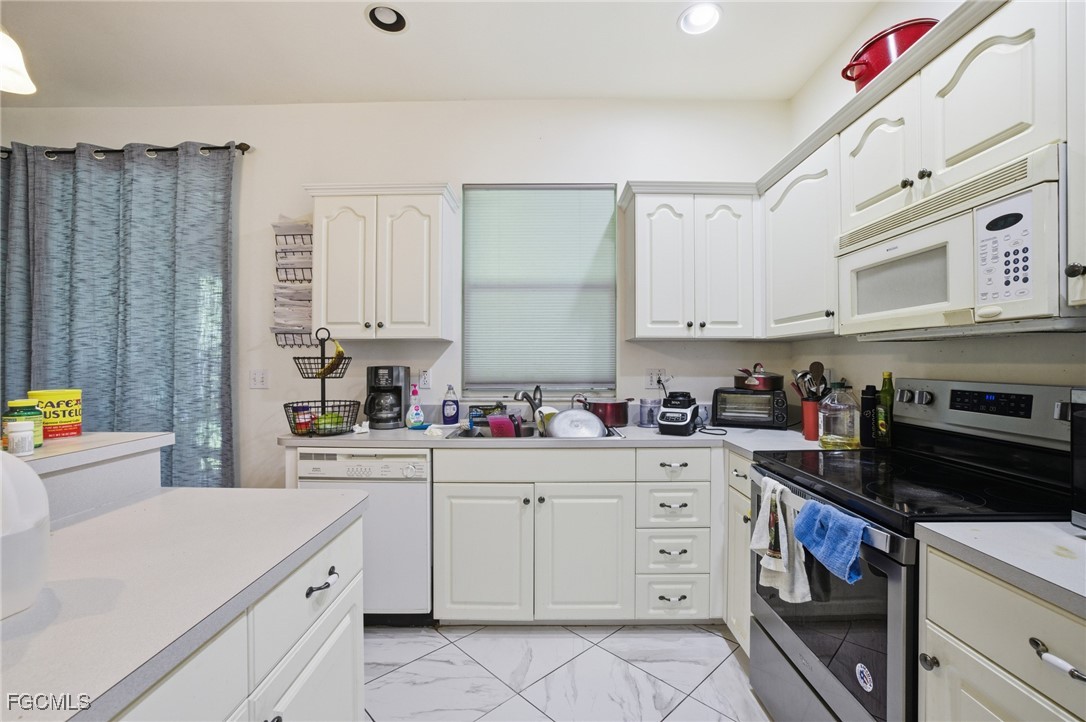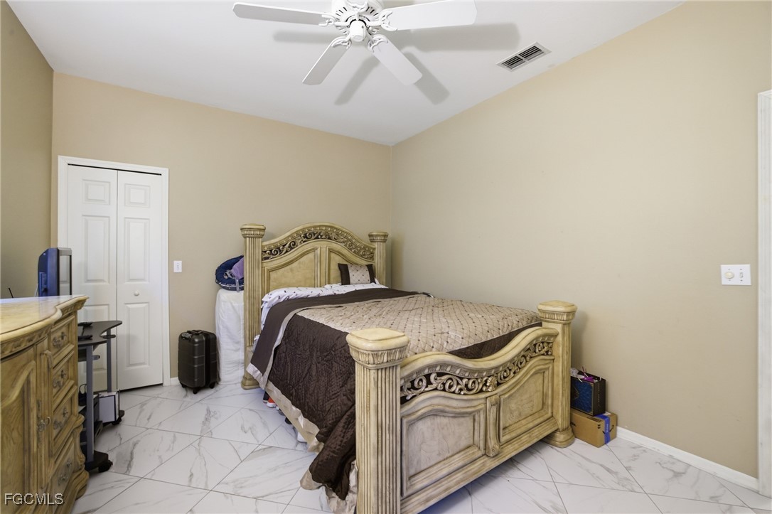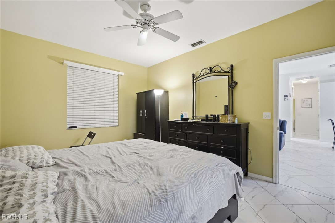 Welcome home to this 3-bedroom, 2-bath residence situated on a spacious .29-acre corner lot in a quiet area of Lehigh Acres! This home offers an inviting open floor plan with plenty of natural light, a comfortable living area, and a functional kitchen with ample cabinet and counter space. The split-bedroom design provides privacy, with a generous primary suite featuring a walk-in closet and private bath. Enjoy relaxing or entertaining in the large backyard — perfect for adding a pool, garden, or outdoor living space.