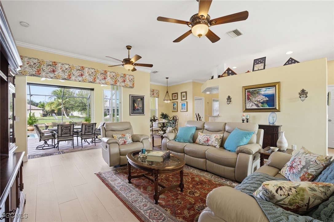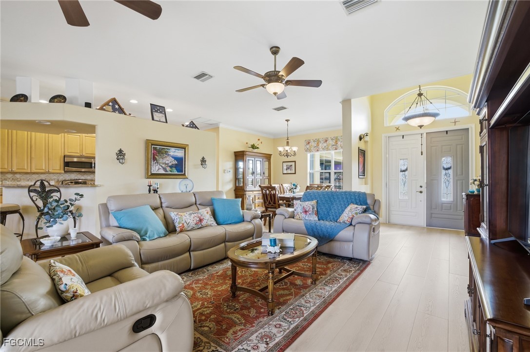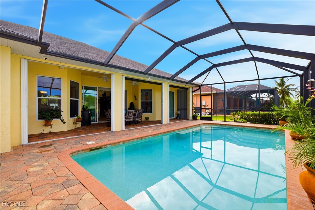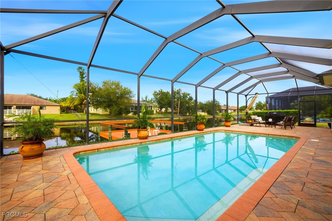 Pride of ownership shines bright on this 3/2/2+ home. As you walk in through your double door entry you are welcomed with an open floorplan that leads out to your beautiful heated, salt water pool and view of your fresh water canal...perfect for fishing, kayaking, boating and more that Florida has to offer. Inside has easy to maintain vinyl floors throughout and tile in the bathrooms. Granite countertops, real wood cabinets with pull-out shelves for your convenience. Crown molding and larger updated baseboards add an upscale touch. All bedrooms include walk-in closets for extra storage and oversized garage has plenty of space for workbench, lawn equipment, and 2 cars. Accordion hurricane shutters on all windows and a circular driveway adds even more conveniences for the new owner. Saltwater pool also has colored lights for ambience and electric heater for comfort. The exterior of the home has just been painted and there are security cameras for safety. Roof and A/C have been replaced in past couple of years. This wonderfully maintained home is also close to the hospital, restaurants, shopping, police and fire rescue. Assessments paid and not in a flood zone.