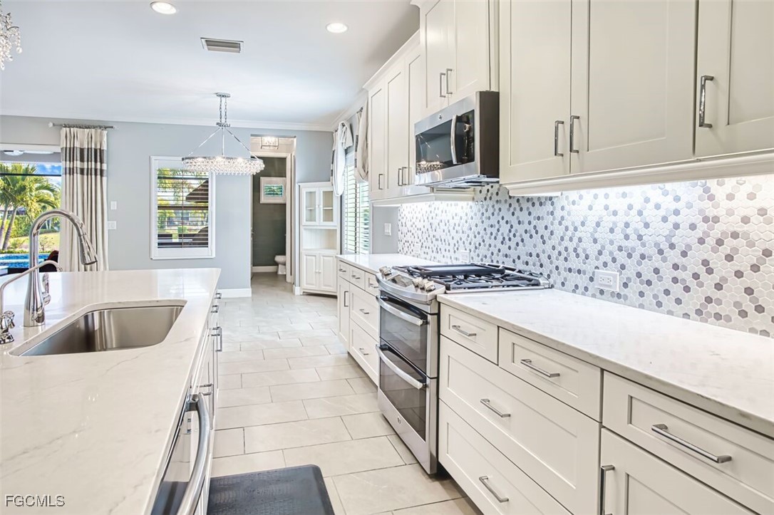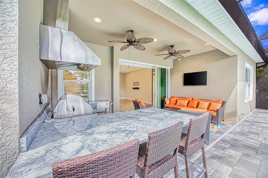 Welcome home to this beautifully maintained four-bedroom plus den, three-and-a-half-bath home in the highly sought-after, gated community of Coastal Key. Designed with both comfort and entertaining in mind, this residence offers an exceptional blend of indoor and outdoor living with peaceful lakefront views. The backyard was designed for entertaining, featuring a large custom pool and oversized spa, along with a fully equipped outdoor kitchen—perfect for hosting gatherings or enjoying quiet Florida evenings by the water. Inside, the home offers stainless steel appliances, a decorative tile backsplash, center island, a spacious pantry, and natural gas appliances throughout. The primary suite features two walk-in closets, tray ceilings, dual sinks, granite countertops, and a large walk-in tiled shower. The garage is equally impressive, with 12-foot ceilings and a lift system that allows for parking a fourth vehicle—ideal for car enthusiasts or additional storage. Additional highlights include a whole-home generator and the peace of mind of knowing the property has never experienced flooding. Coastal Key is a boutique, Key West–inspired community tucked away at the quiet end of Winkler Road and surrounded by the Estero Bay Preserve State Park. Residents enjoy a low-maintenance lifestyle with low HOA dues that include all landscaping, security, and professional management. Conveniently located close to shopping, dining, major roadways, and some of the area’s most beautiful beaches, including Sanibel and Fort Myers Beach, this lakefront home offers premium upgrades in one of the area’s most sought-after communities. Call to schedule your private showing today!
