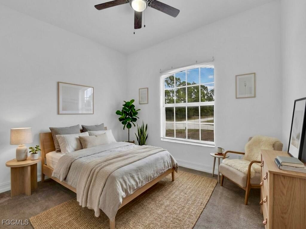 Welcome to this spacious 3/2 home nestled on a corner of a quiet dead-end street in the highly desirable SW side just minutes from Fort Myers and all major amenities. It has been freshly painted & spotlights a (2023) DIMENSIONAL shingle roof and a (2024) HVAC system for peace of mind. The open great room showcases GRAND elevations with high & cathedral ceilings, creating a bright, airy living space. The kitchen is equipped with newer stainless steel appliances & an awarding breakfast bar, while the primary suite offers dual sinks, dual closets, and a walk-in shower. Additional highlights include newer fixtures, a screened back patio, newer water softener system, and desirable high-speed internet availability. A well-maintained home in a quiet setting with easy access to everything Southwest Florida has to offer. Schedule a showing today!