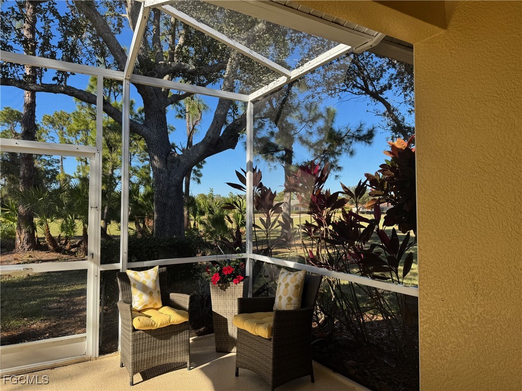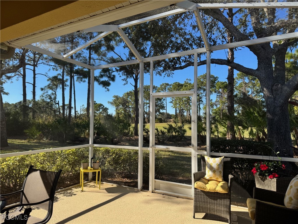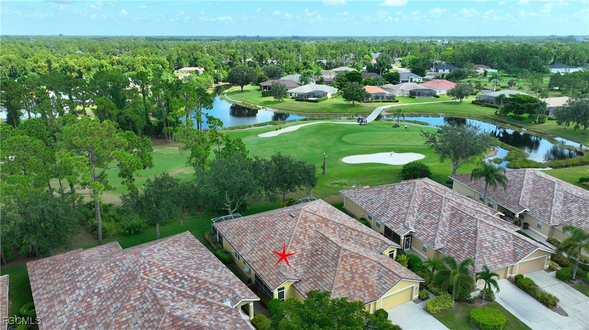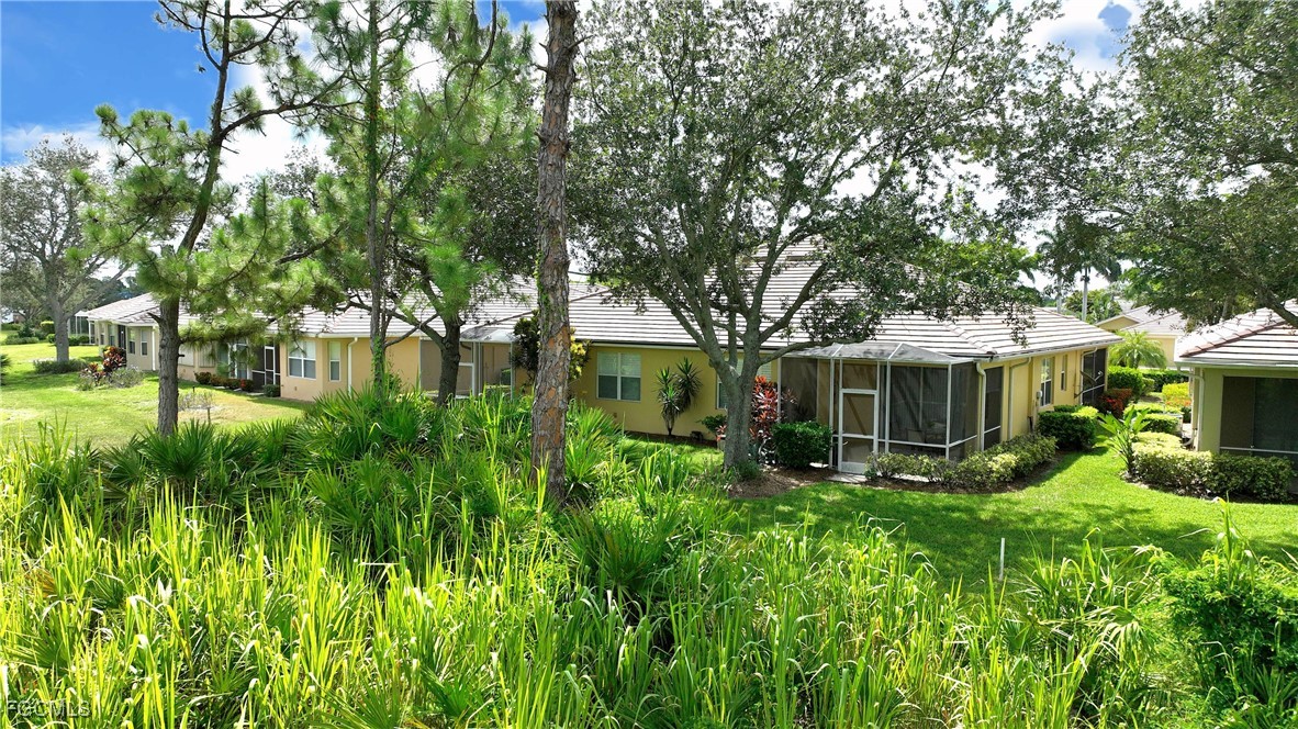 Is this what you have been waiting for? A beautifully furnished villa that is move in ready! 2 bedroom/2bath with a den. This opportunity is being offered turnkey, it could be your seasonal retreat or full-time home. This villa has so much to offer, inside is light and bright with plantation shutters, an extended screened back lanai to enjoy watching the golfers at the 15th hole, drinking your morning coffee, or socializing with friends in the evening. Kitchen features stainless steel appliances, tile backsplash, and 42” cabinets. Located withing a 24-hour attended gate community with a public golf course, restaurant, and bar on site. Geothermally heated community pool and spa, pickleball, tennis, basketball, exercise room community room, billiards, and ping pong. Very active, all age community with many opportunities for socializing and meeting your neighbors, from Food Truck nights with resident DJ’s, children’s events, fundraisers, car shows, Veteran’s Day recognition, Memorial Day ceremonies, community parties, golf cart parades, trunk or treat, etc. Easy access to the airports and beaches, shopping and dining with low HOA fees and County taxes only. FLOOD ZONE X, no flood insurance required. So grab your golf clubs, pickleball equipment and toothbrush!