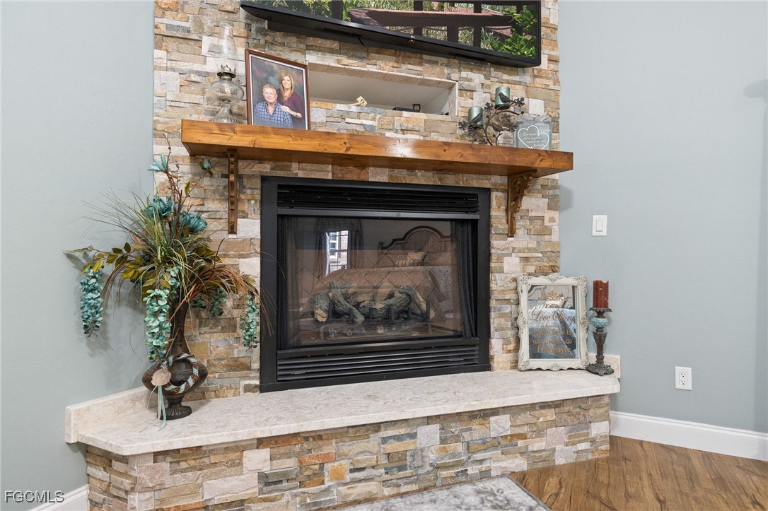 Enjoy resort-style living with a heated pool, sheer descents, lighting, and stunning lake views. The stone-paved lanai includes an outdoor cooking and entertainment area, with a paved walkway leading to a firepit.