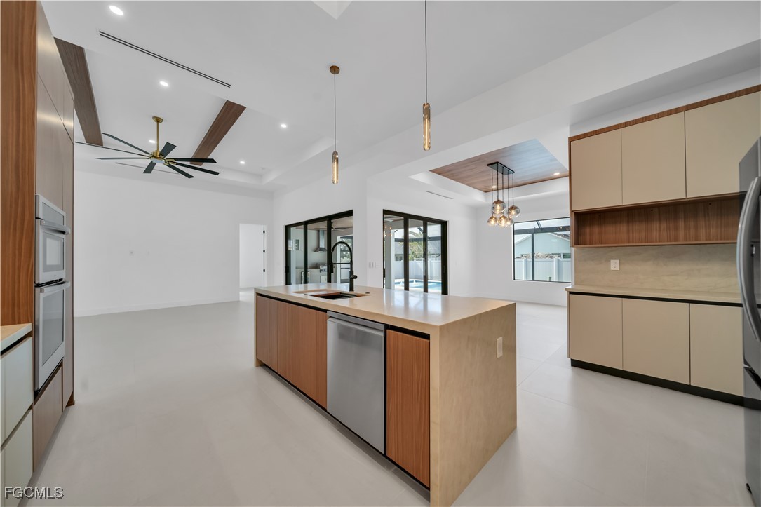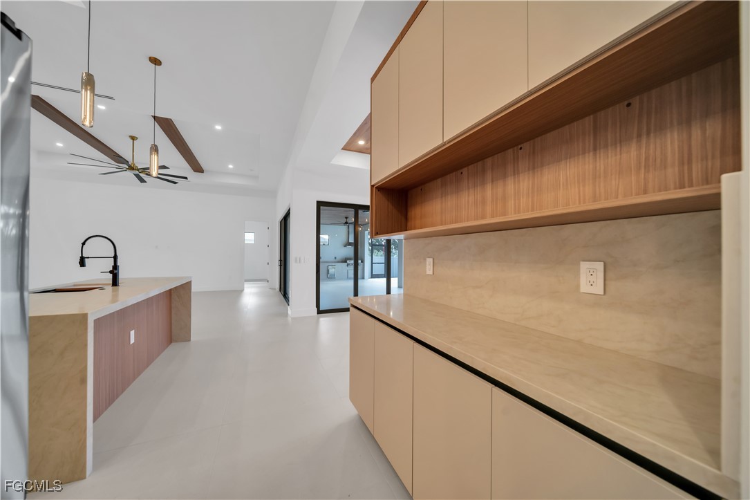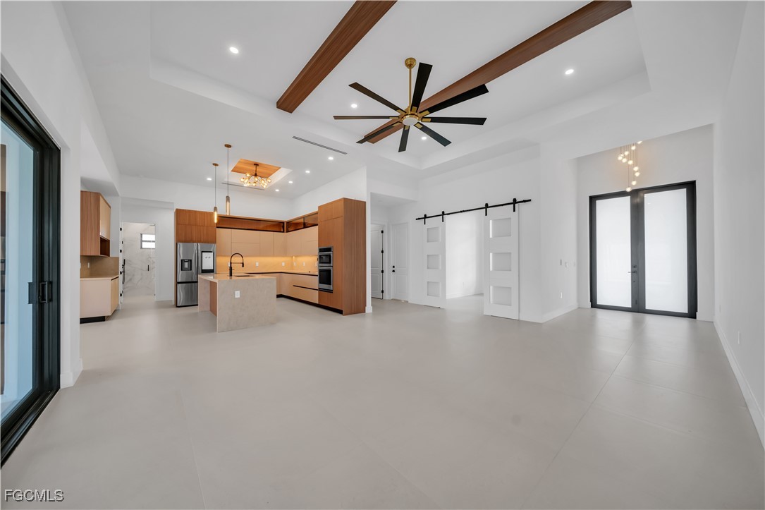 Experience the pinnacle of modern luxury in the beautiful city of Cape Coral, Florida. This exquisite 3-bedroom, 3.5-bath estate showcases dramatic soaring ceilings, refined architectural details, and impeccable craftsmanship throughout. Designed to impress, the open-concept living space flows seamlessly into a designer kitchen appointed with top-of-the-line stainless steel appliances, custom cabinetry, and elegant European tile flooring.